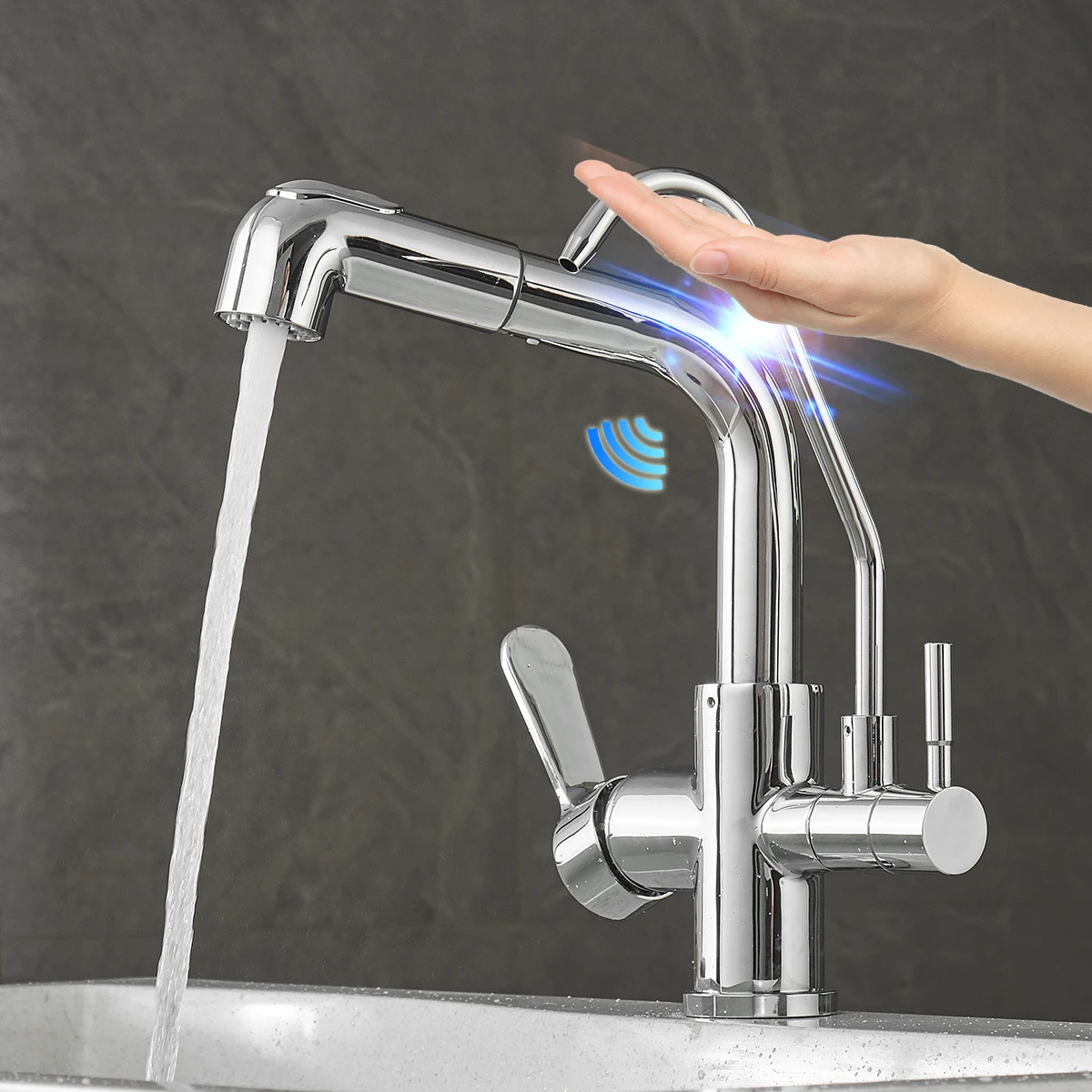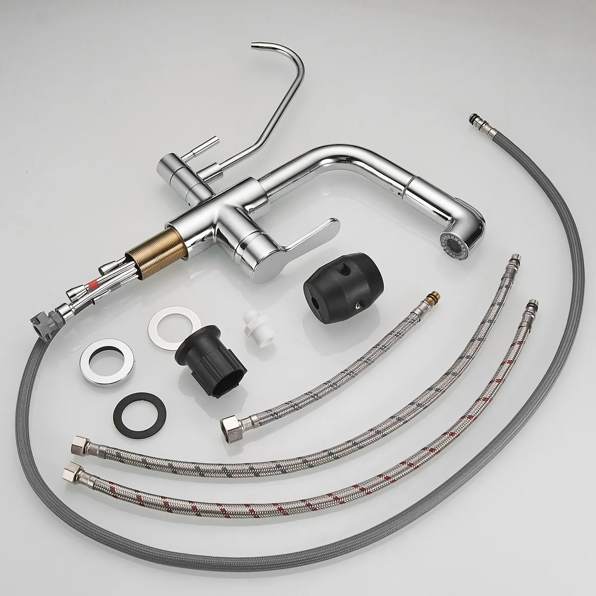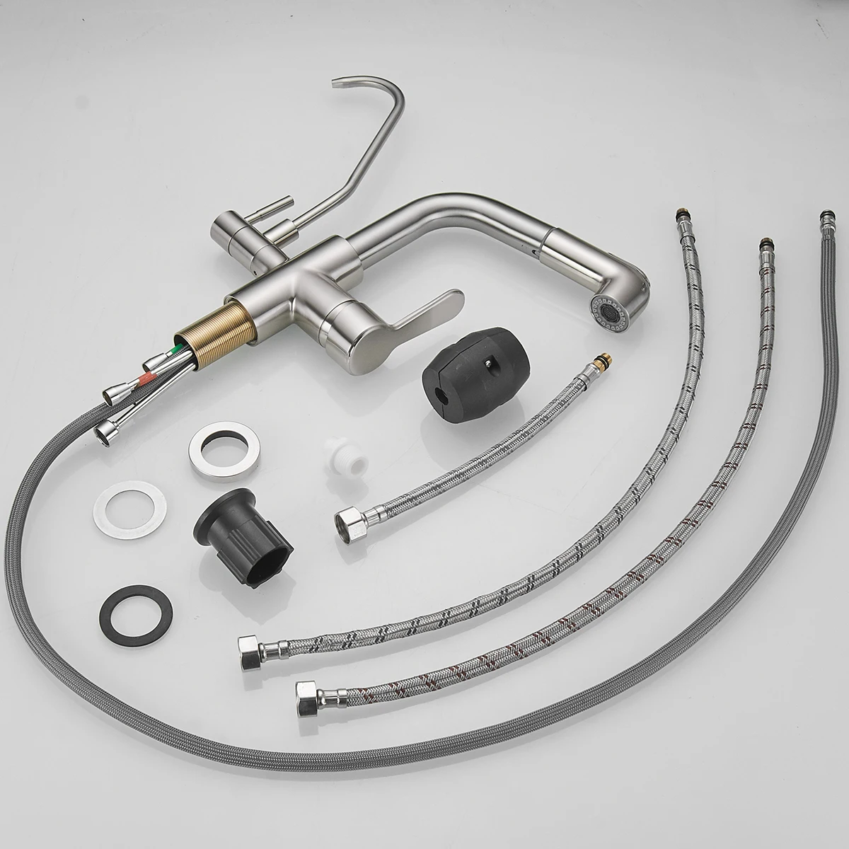 - Kitchen Faucet with Water Filter: Upgrade your kitchen with Kitchen Faucet with Water Filter, a versatile 3-in-1 faucet that combines hot & cold water functions with RO water capabilities. This single hole kitchen faucet is perfect for those seeking a convenient and space-saving solution