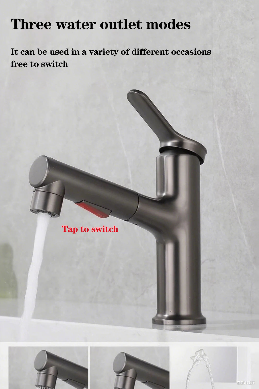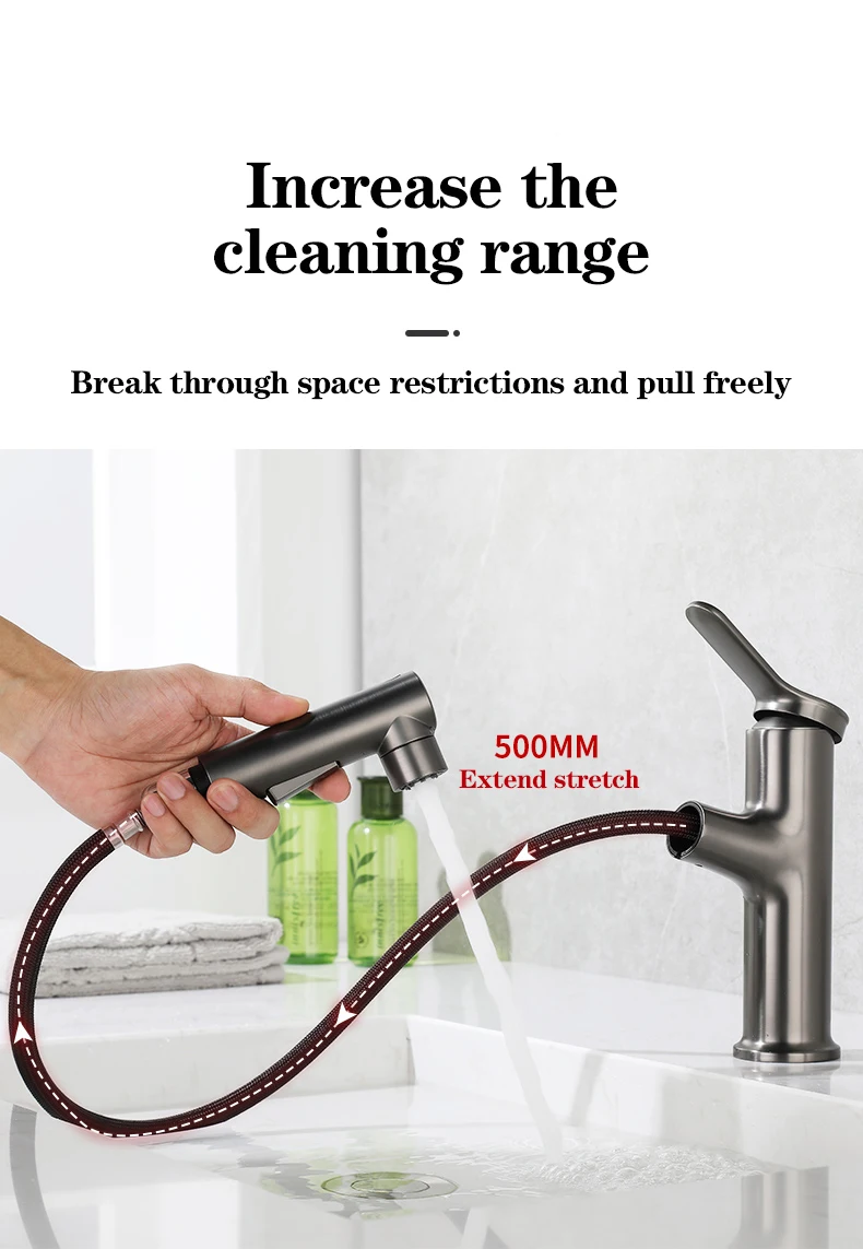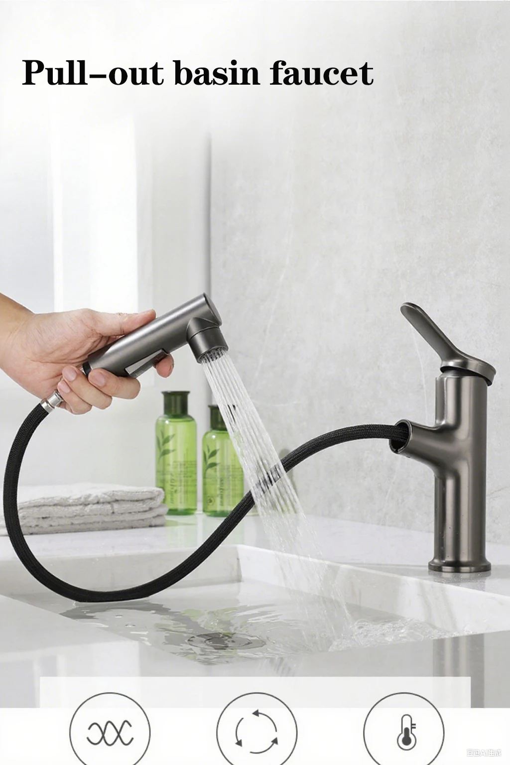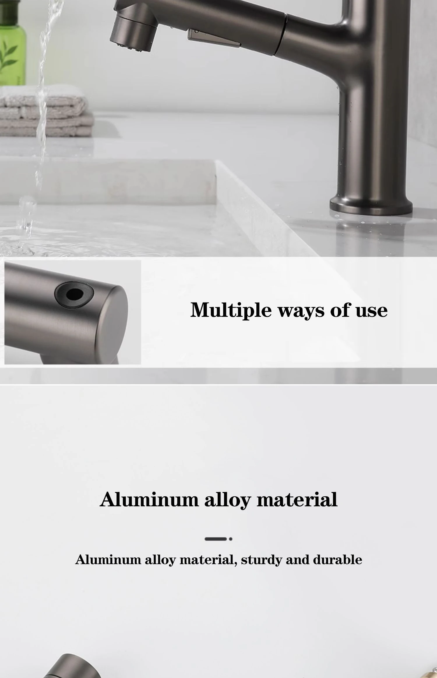 Robinet d’évier de cuisine pour salle de bains, robinet en alliage d’aluminium, lavabo extractible mixte chaud et froid, Installation de pont, accessoires de robinet d’eau
