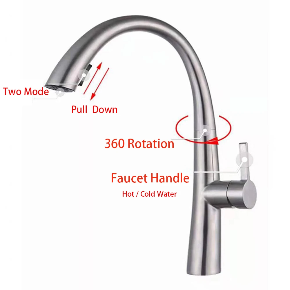 Robinet d’évier de cuisine en acier inoxydable 304, matériau du corps, mélangeur à Rotation 360 degrés, eau froide et chaude, tuyaux d’extraction