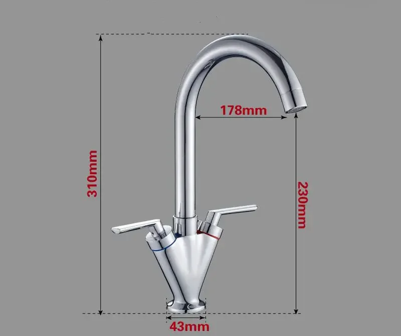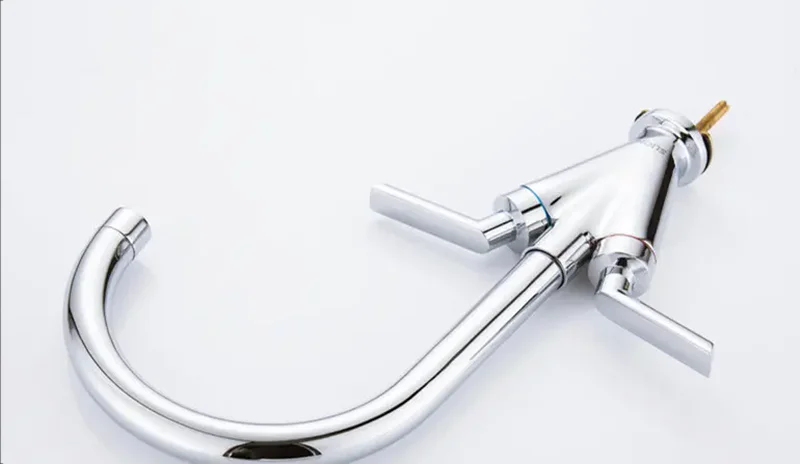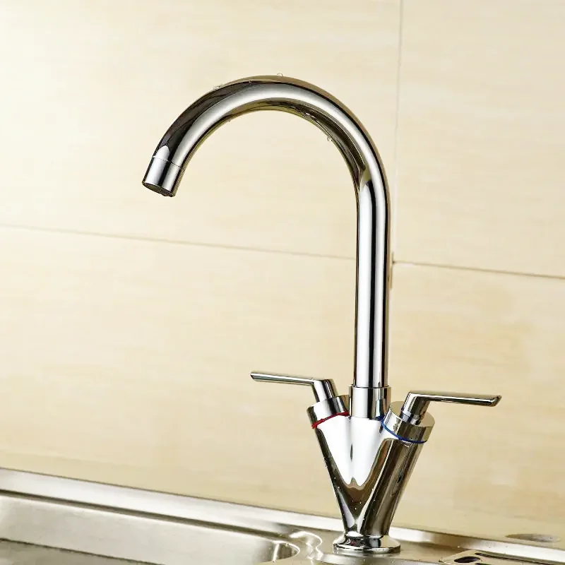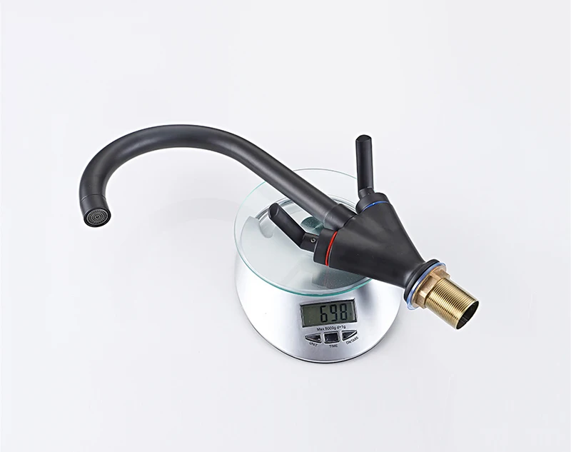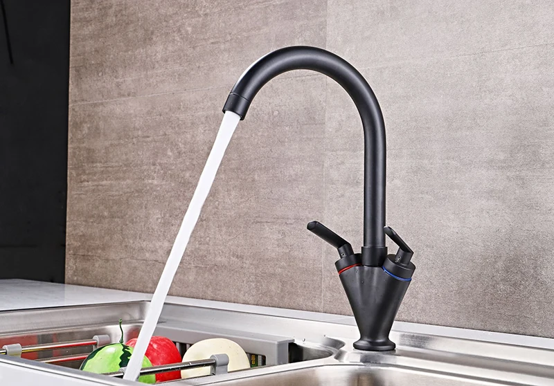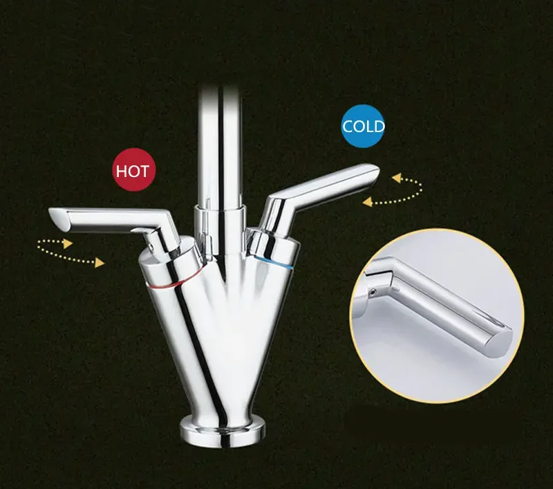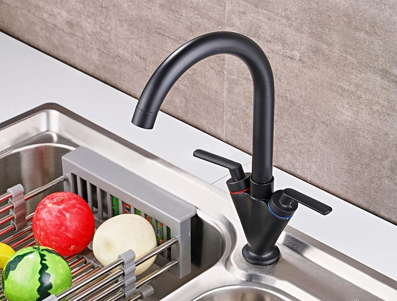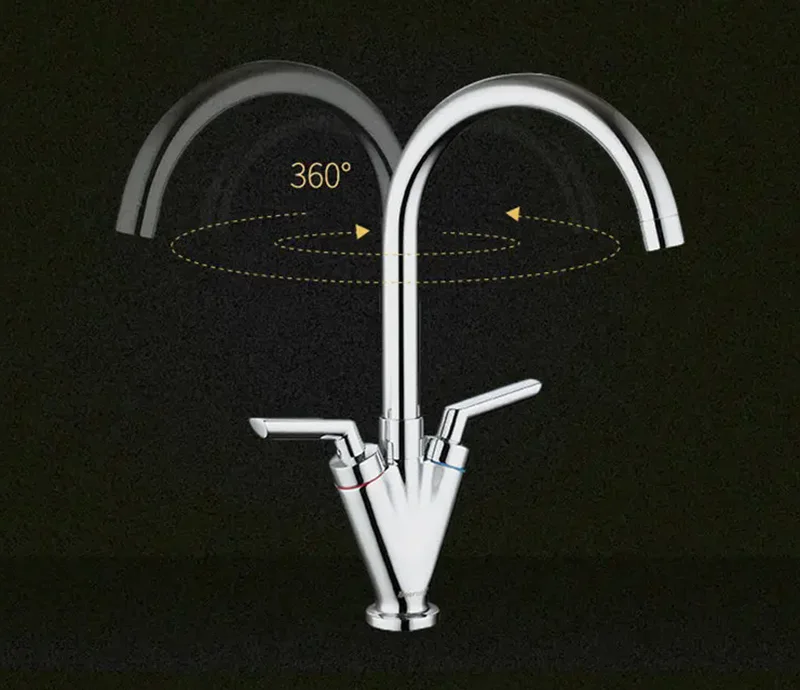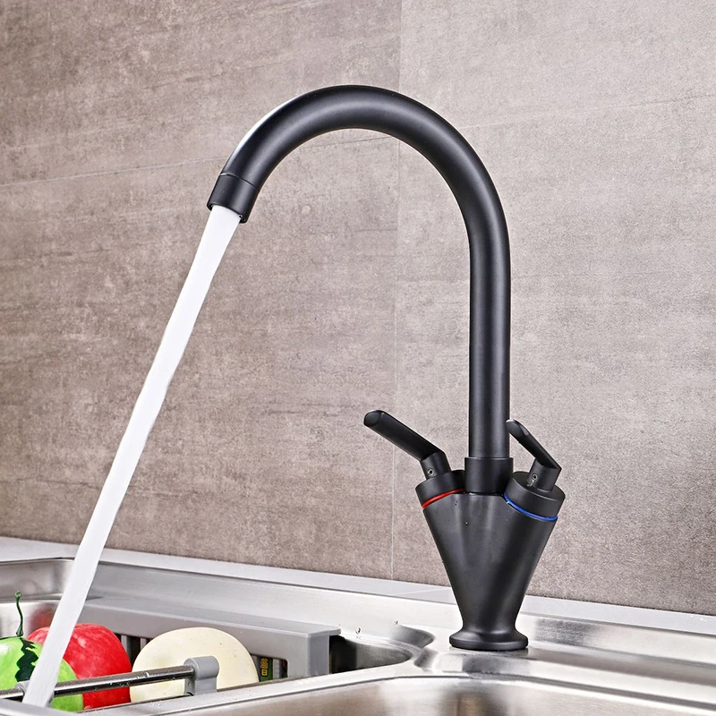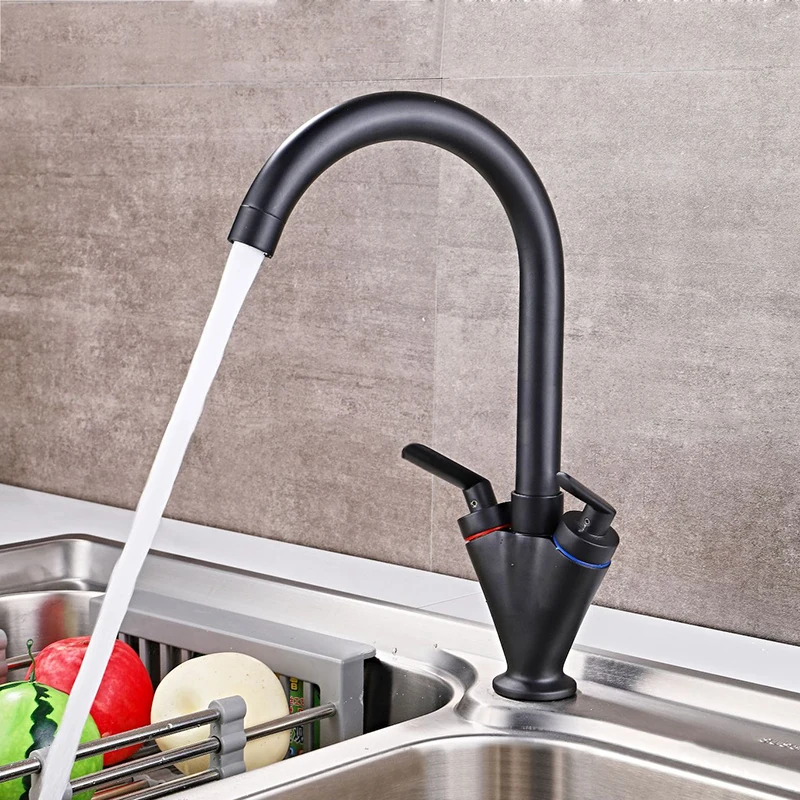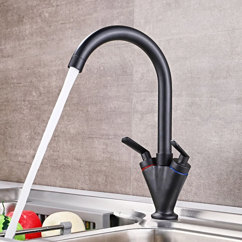 Robinet de cuisine Robinet d’eau chaude et froide Robinet d’évier de cuisine en laiton noir à double poignée 360 Rotation Mitigeurs flexibles montés sur le pont