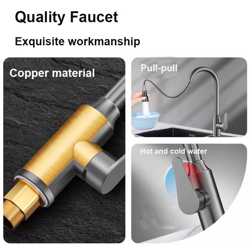 Robinet d’évier de cuisine extractible, robinet en laiton, mélangeur monté sur le pont, robinets d’eau chaude et froide, mitigeur d’évier de cuisineRobinet d’évier de cuisine extractible, robinet en laiton, mélangeur monté sur le pont, robinets d’eau chaude et froide, mitigeur d’évier de cuisine