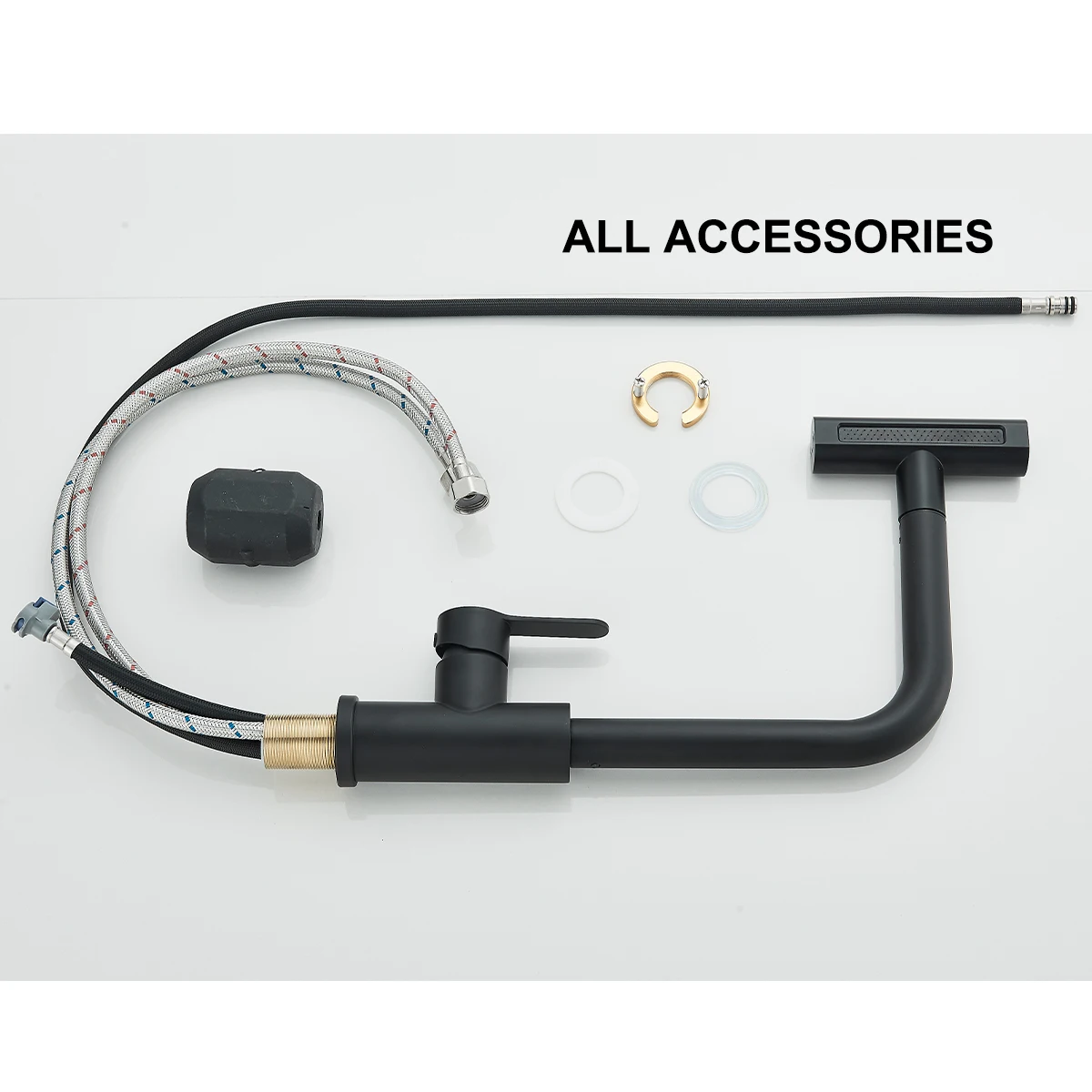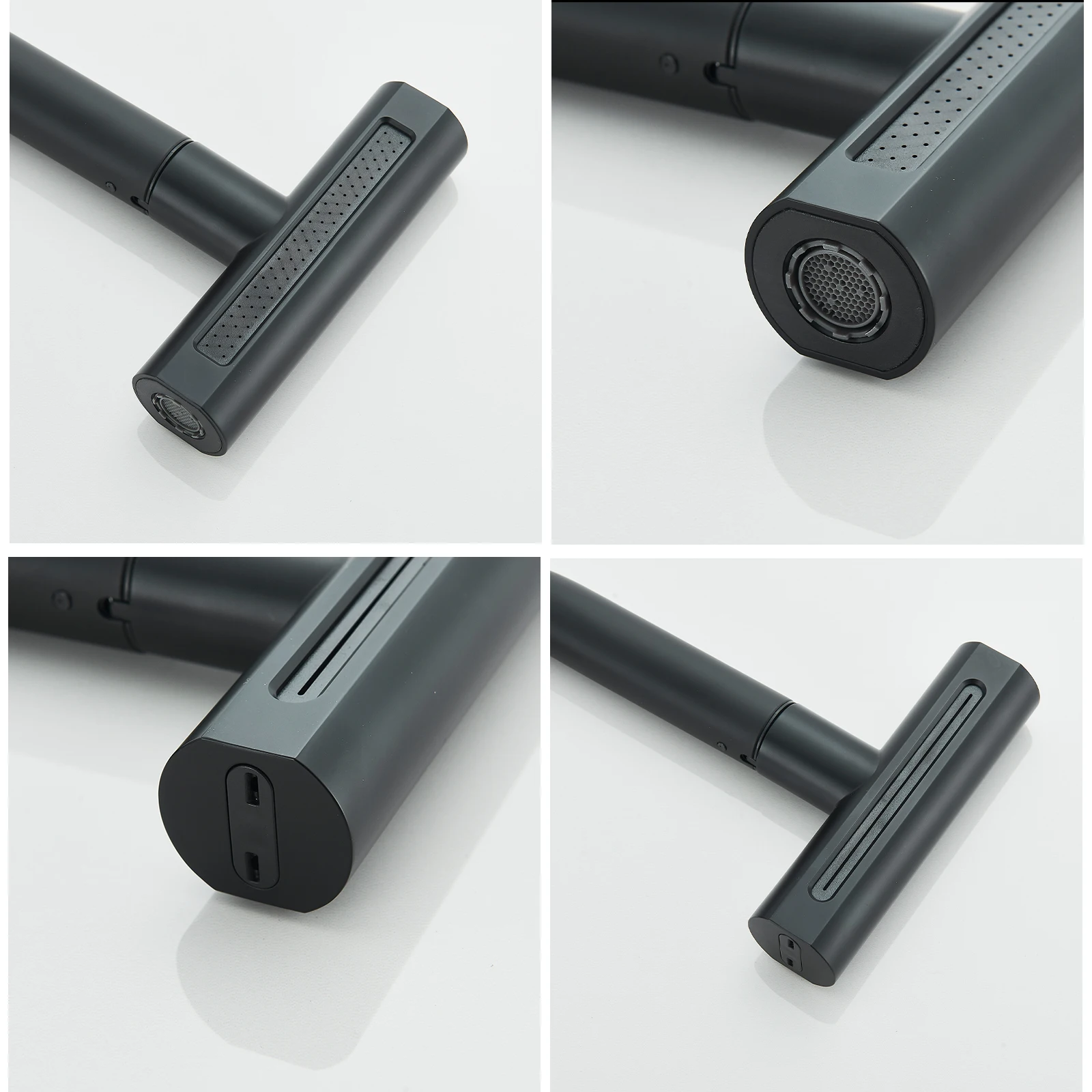Robinet d’évier de cuisine noir extractible, 4 Modes de Rotation, mitigeur d’eau chaude et froide, poignée unique, grue de cuisine montée sur le pont