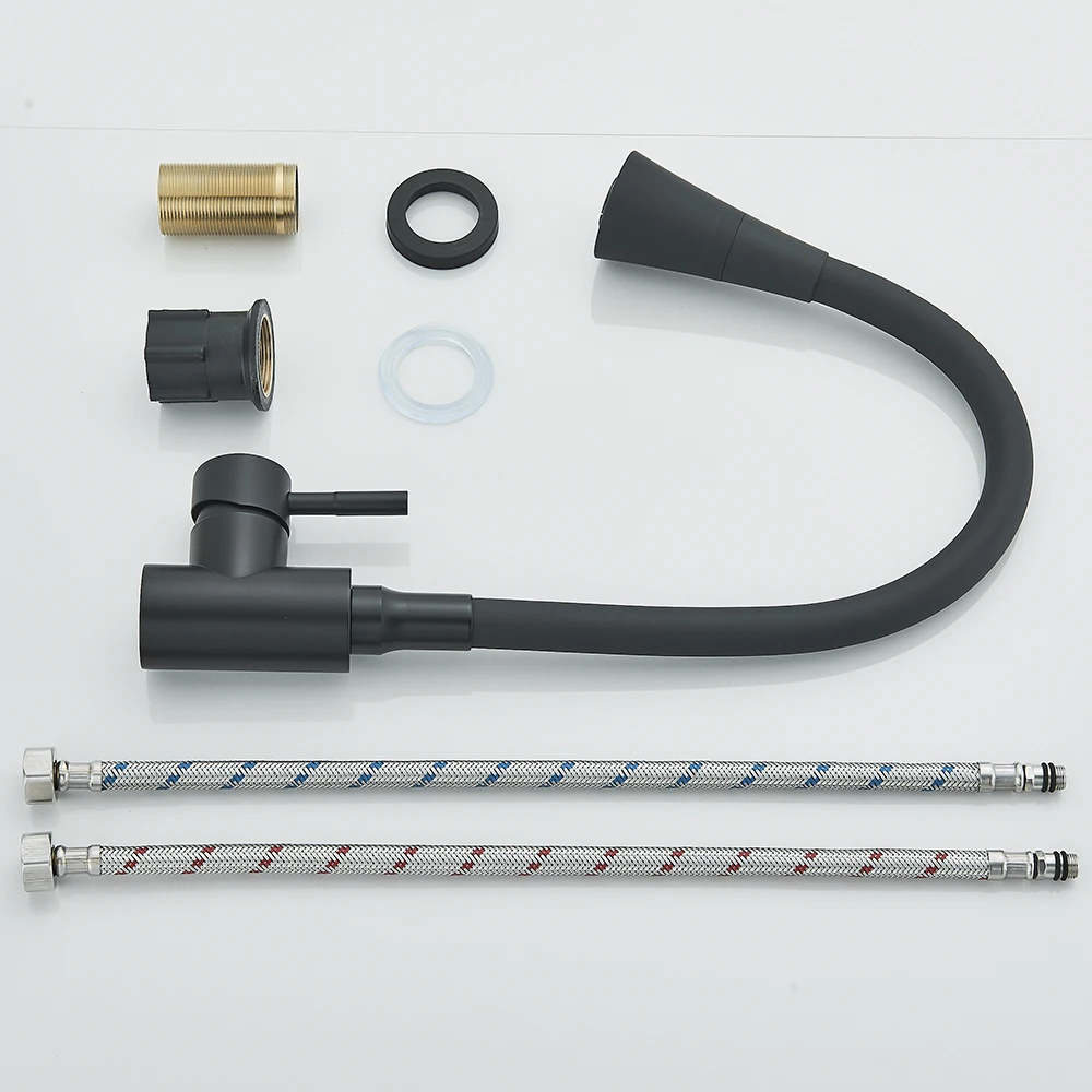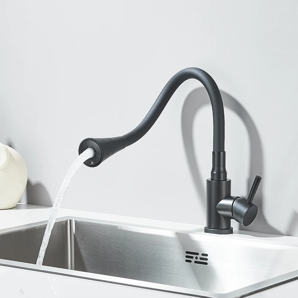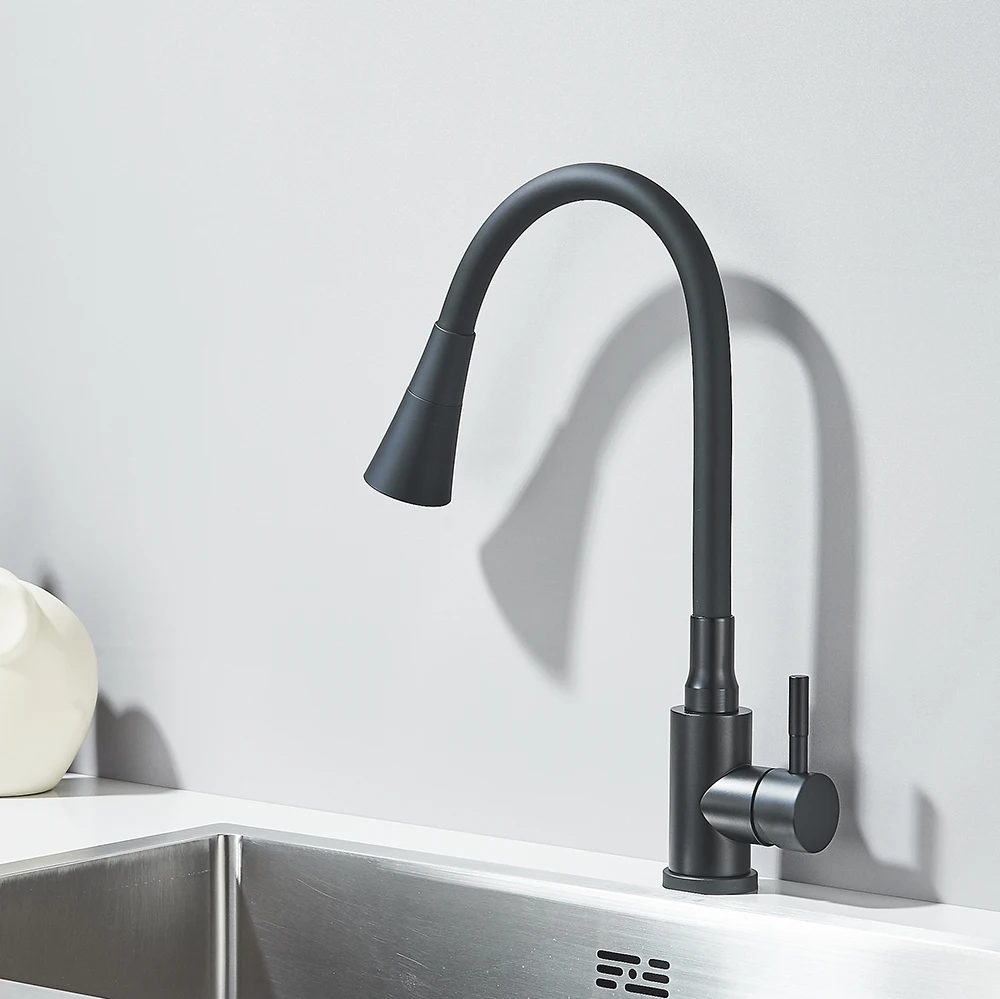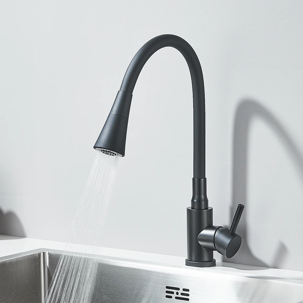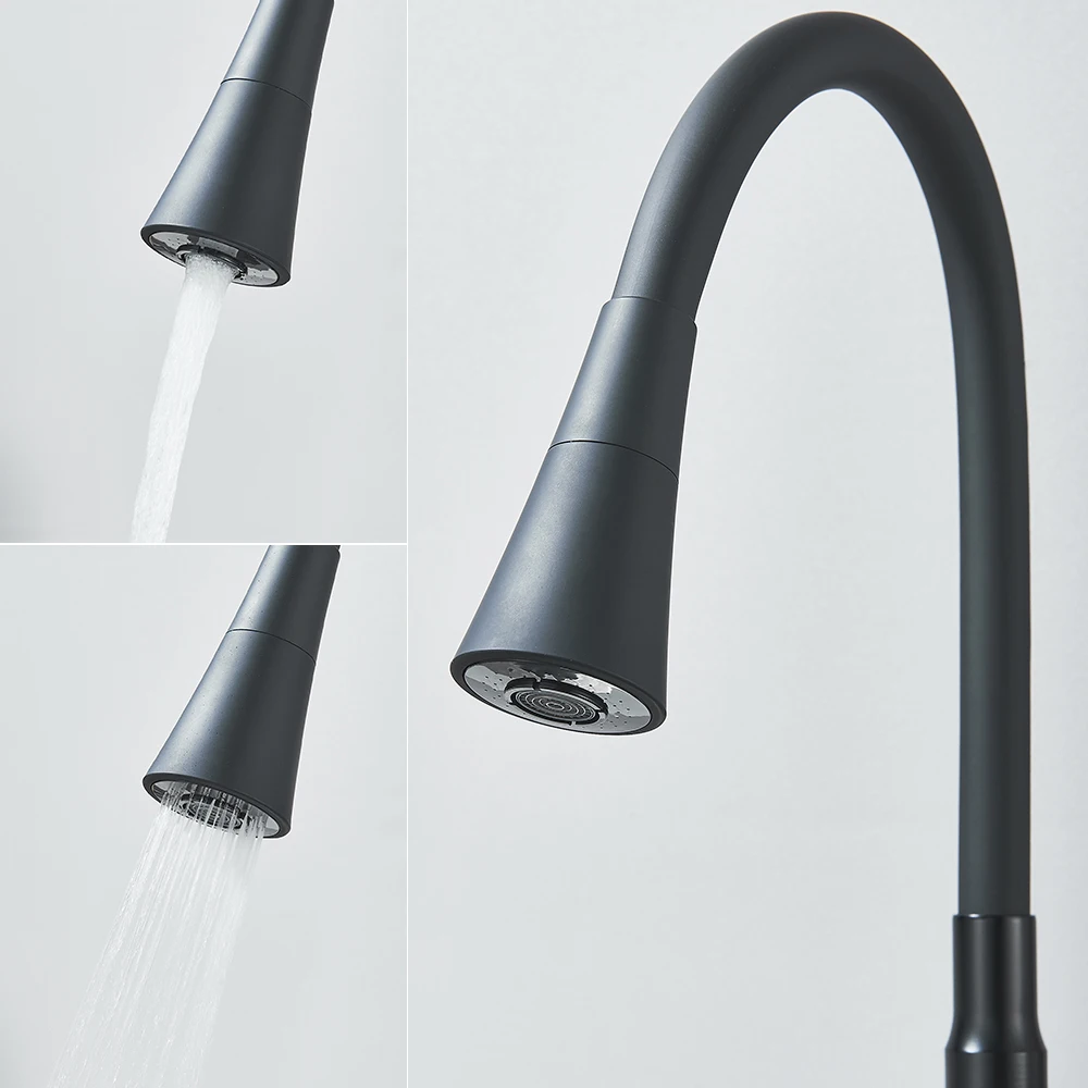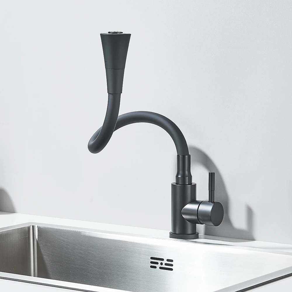 Robinet d’évier de cuisine noir mat, tuyau d’eau Flexible, 2 Modes, bec rotatif, poignée unique, mélangeur d’eau froide et chaude, grue de lavabo
