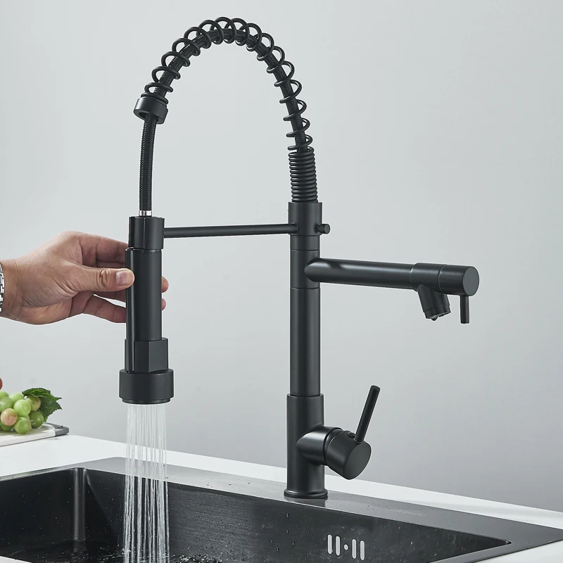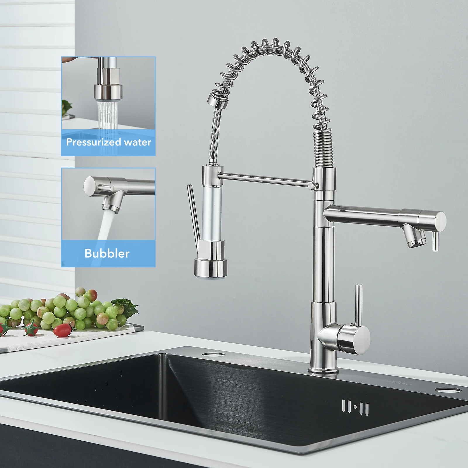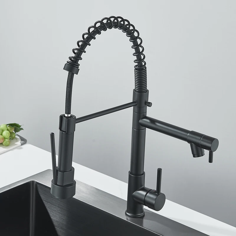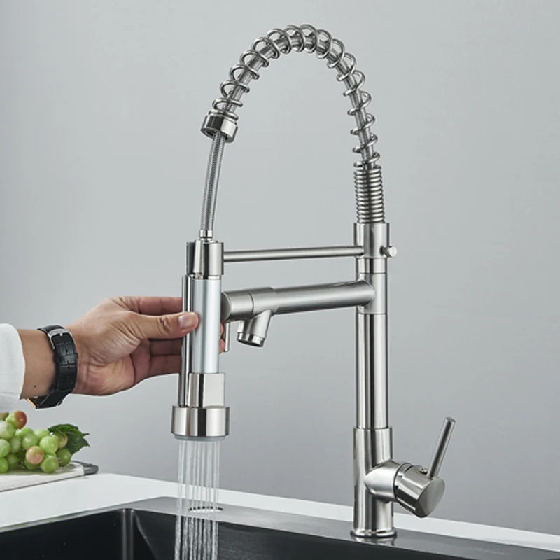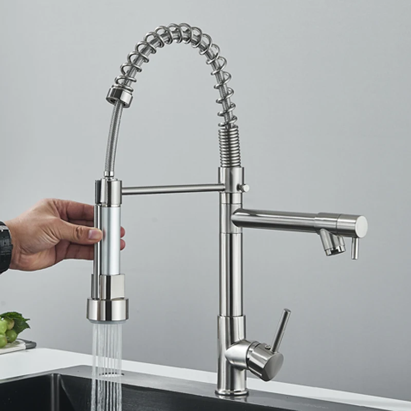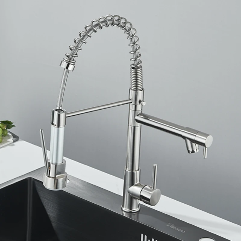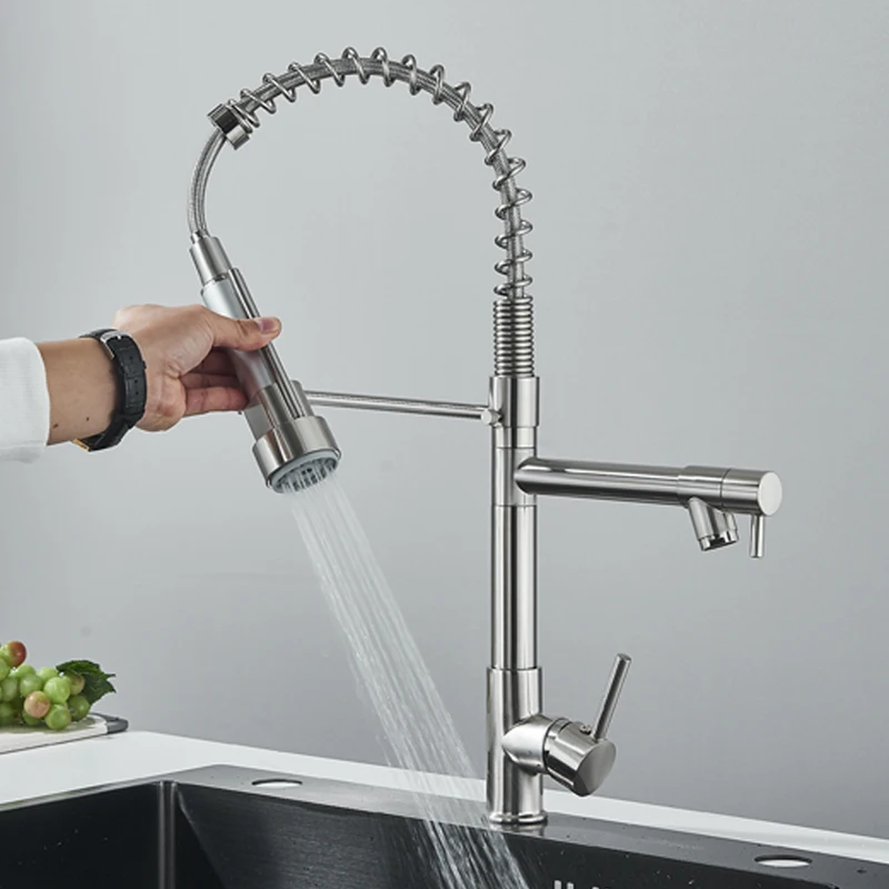 Robinet mitigeur de cuisine en acier inoxydable, robinet mitigeur Gourmet à levier unique, pulvérisation extractible, double bec, robinet d’évier de cuisine