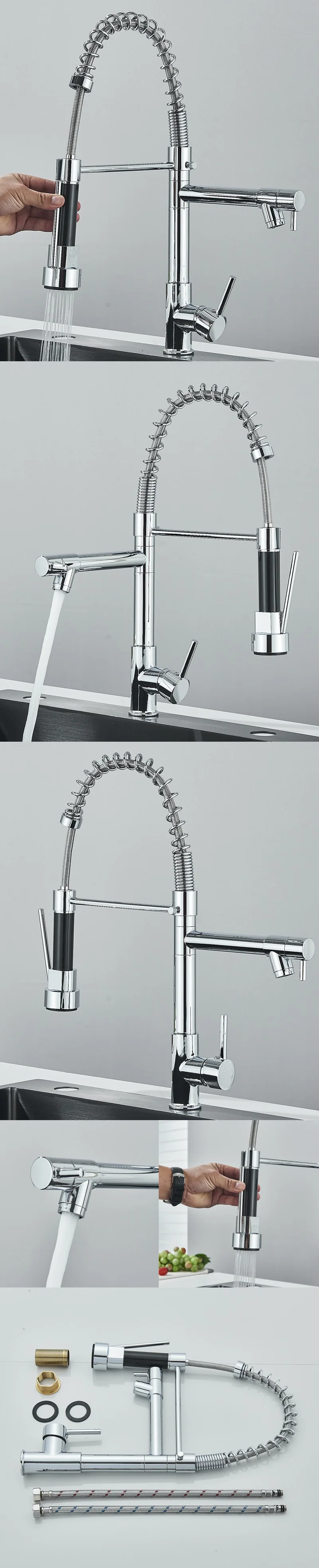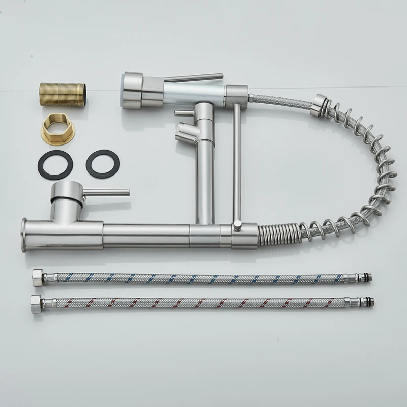 Robinet de cuisine en acier inoxydable, mitigeur Gourmet, levier unique, Spray extractible, double bec, robinet d’évier de cuisine