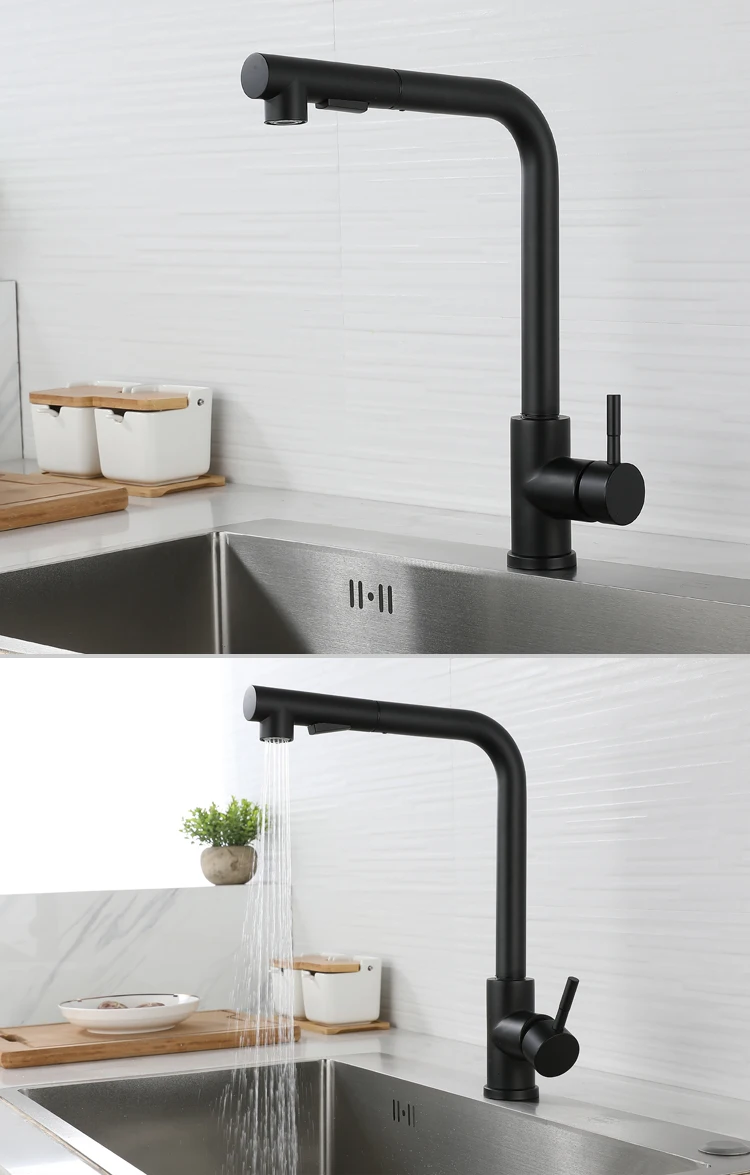 ☛ PULL OUT SPRAYER : pulvérisateur et buse rotatifs à 360 degrés, buse rotative à arc élevé à 360 degrés peut fournir un lavage complet pour votre évier de cuisine, un robinet à poignée unique peut contrôler la température et le débit plus pratique. Le robinet d’évier utilitaire facilite diverses tâches d’espace dans la cuisine.