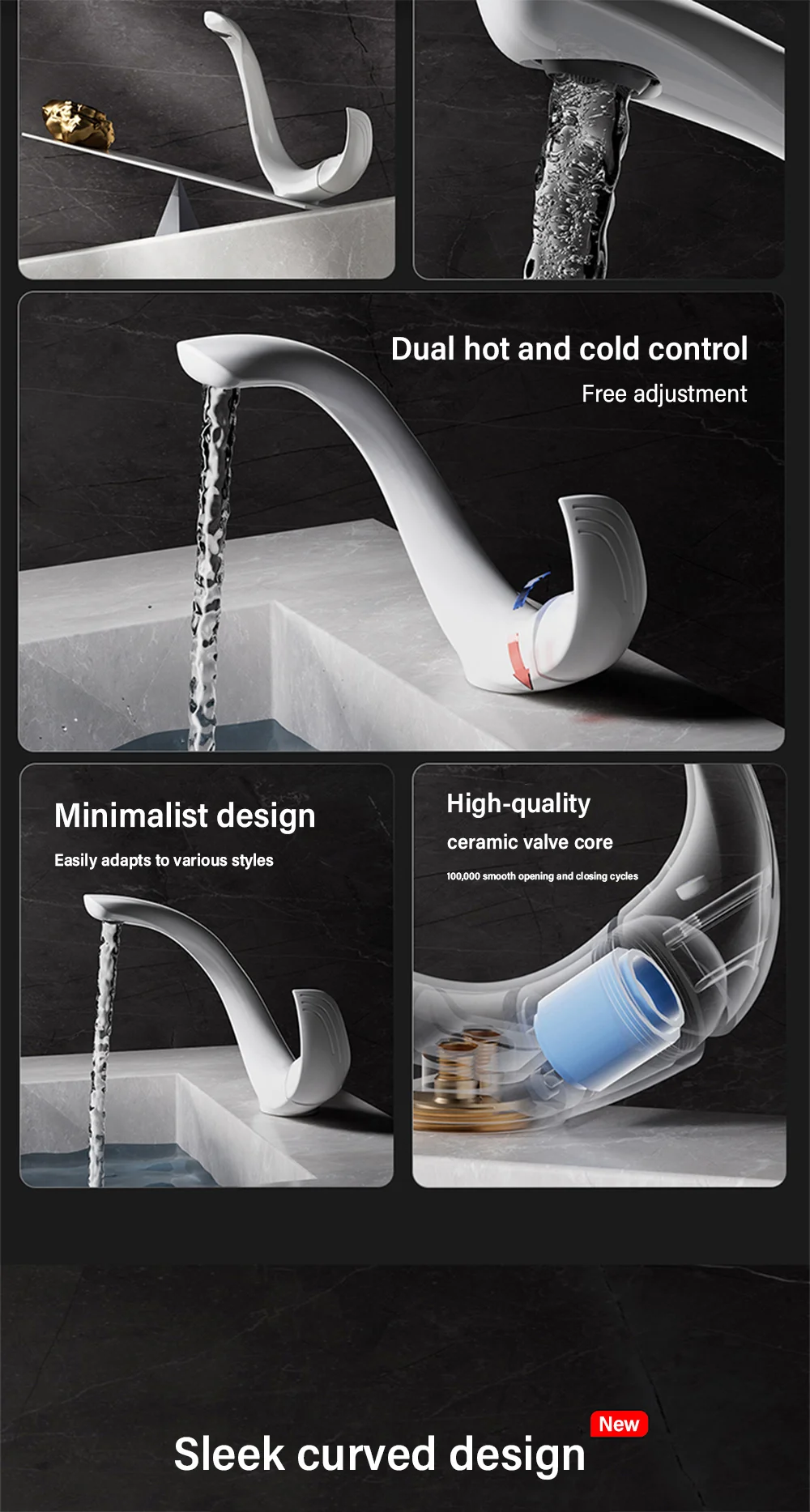 • Design élégant et luxueux, convient bien à une salle de bains haut de gamme
