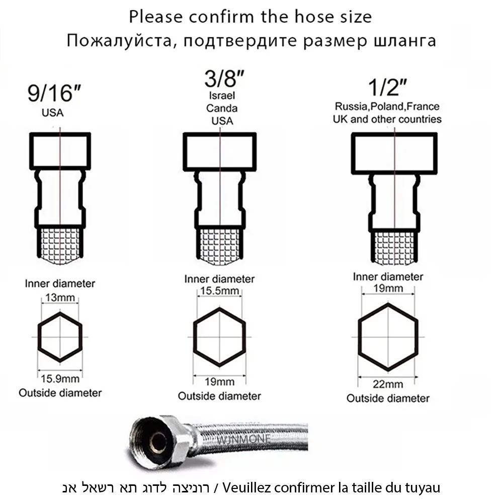 Taille de raccordement du tuyau : G1/2,G3/8,G9/16(60cm)