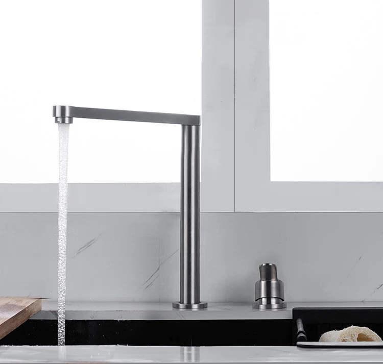 Robinet d’évier en acier inoxydable 304, robinet de cuisine pliable à levage caché, eau mixte chaude et froide, robinet d’évier séparé à double trous