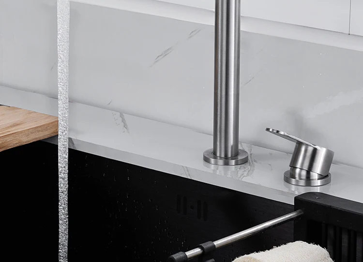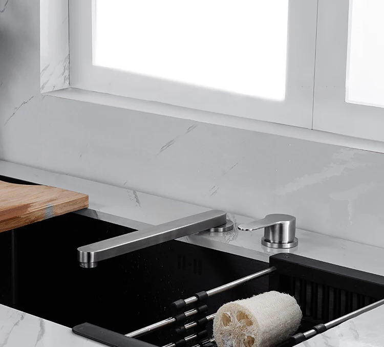 Robinet d’évier en acier inoxydable 304, robinet de cuisine pliant à levage caché, eau mixte chaude et froide, robinet d’évier séparé à double trous