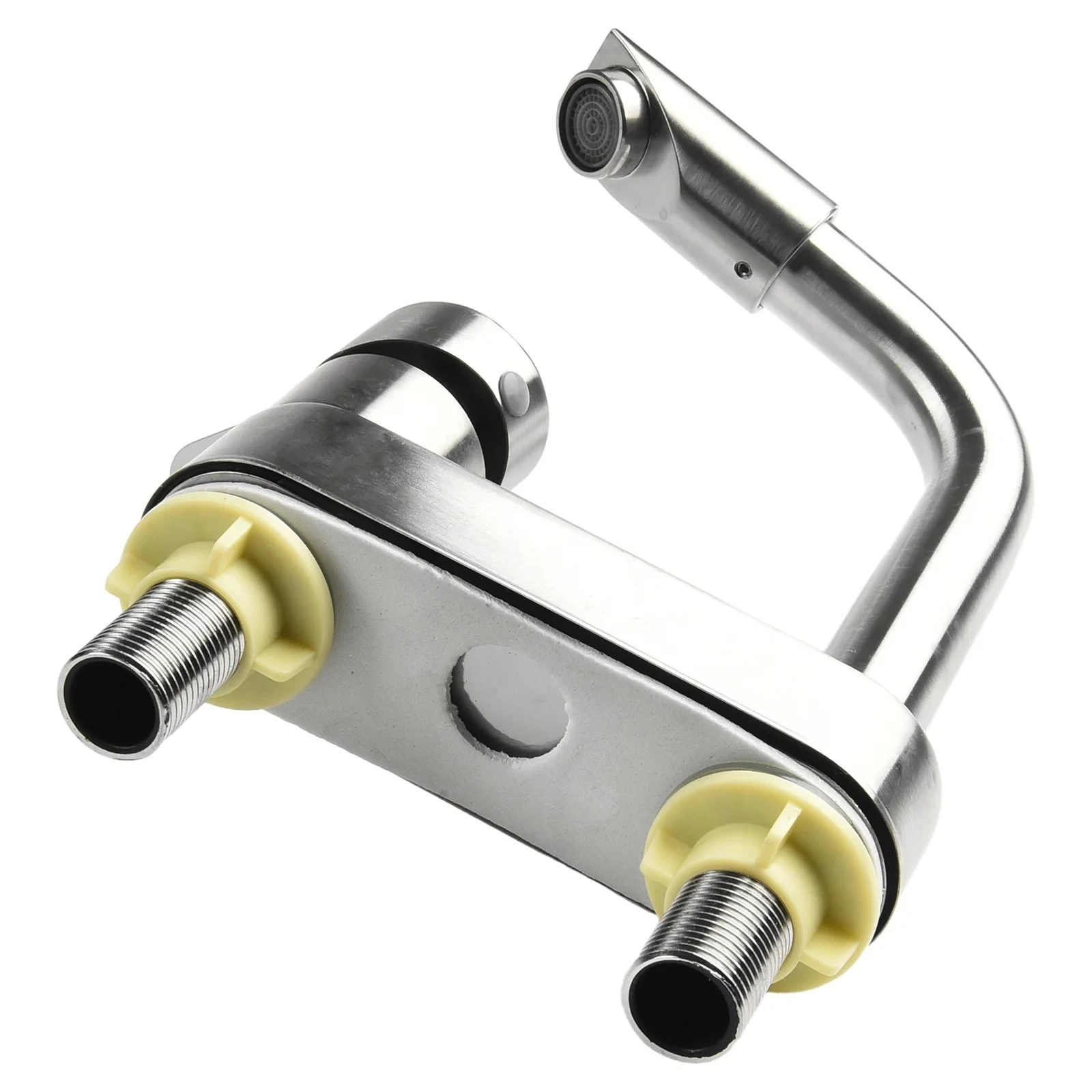 Robinet d’évier en acier inoxydable, robinet d’évier, robinet mitigeur froid et chaud, monté sur un pont à poignée unique avec 2 trousRobinet d’évier en acier inoxydable, robinet d’évier, robinet mitigeur froid et chaud, monté sur un pont à poignée unique avec 2 trous