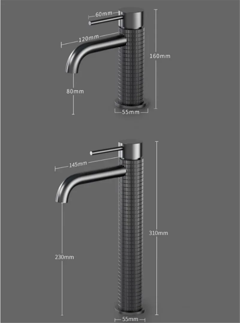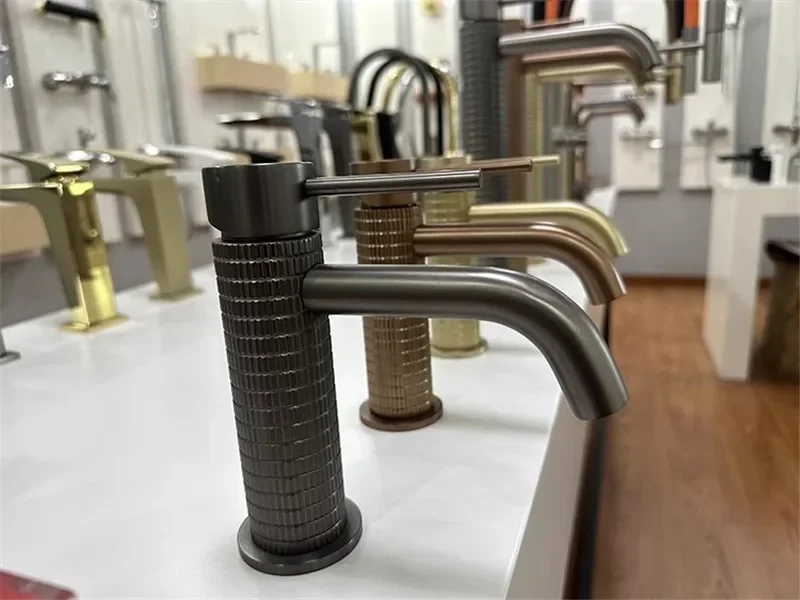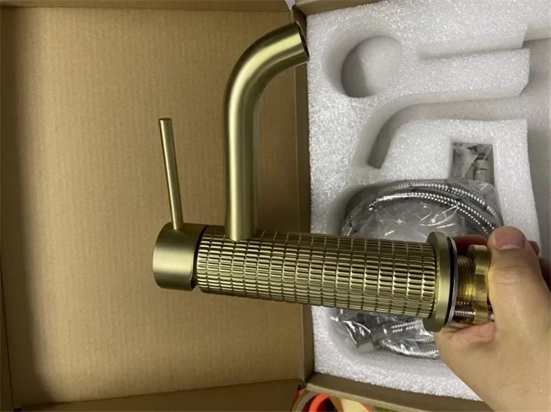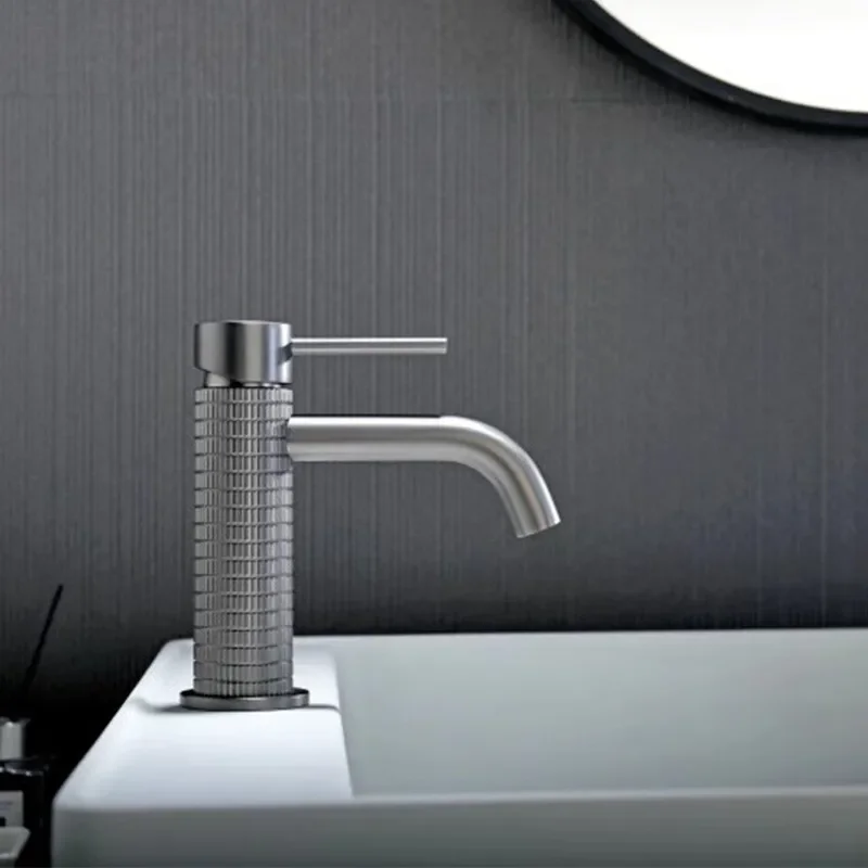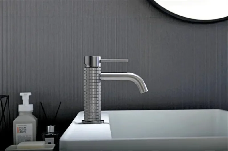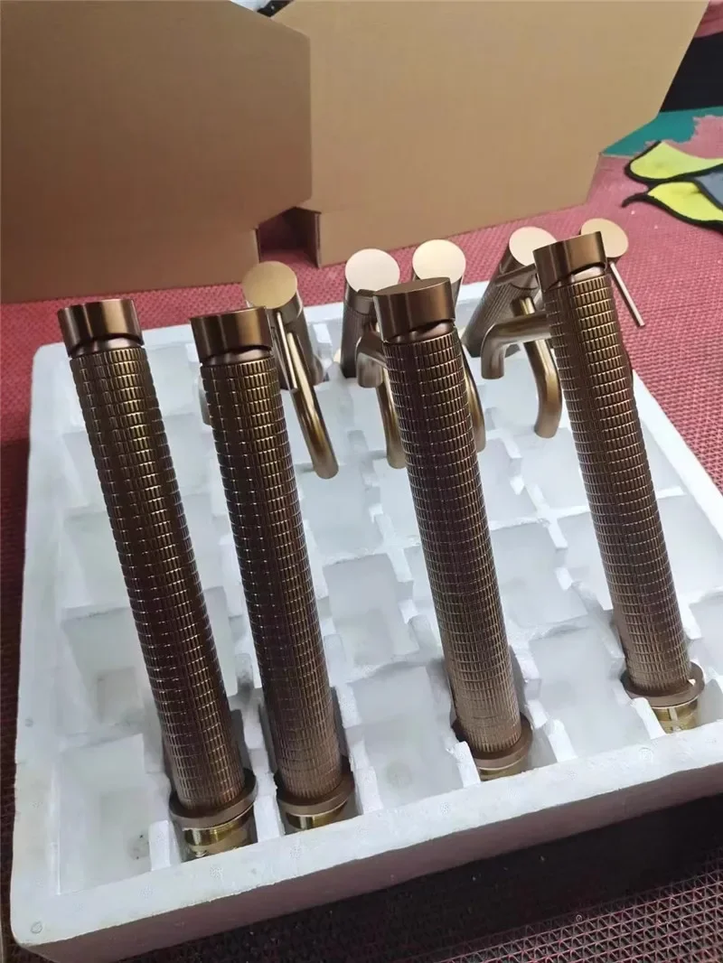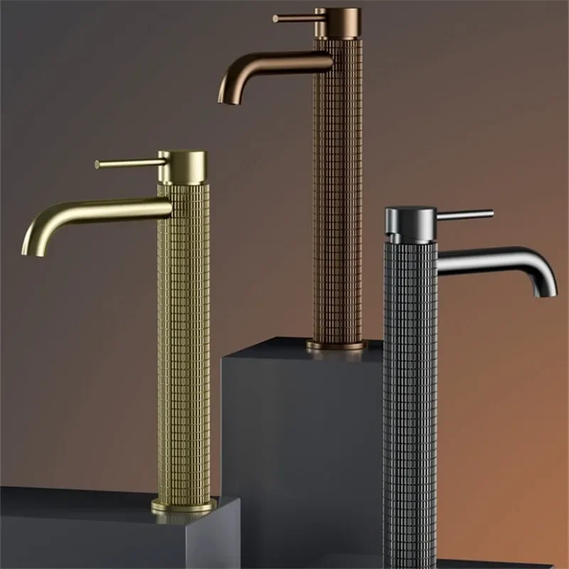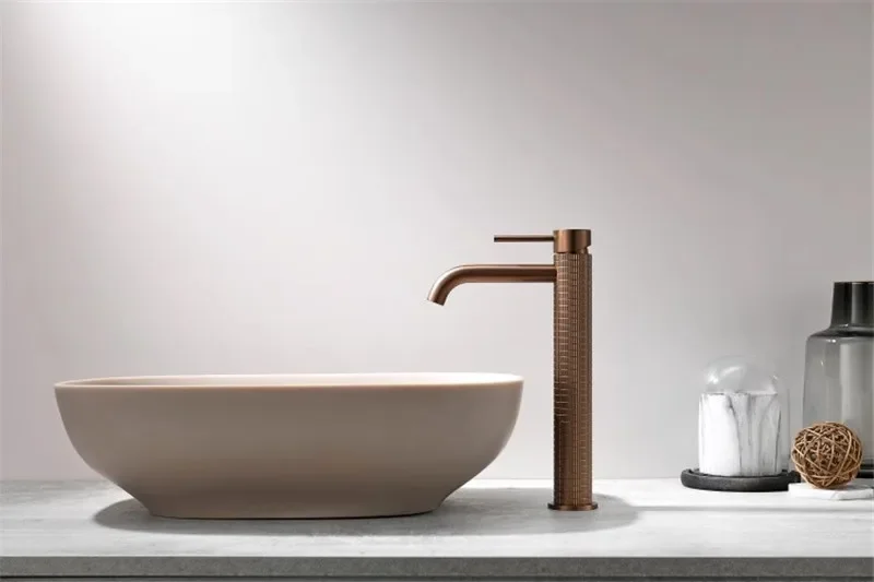 Robinet de salle de bains en or rose brossé Robinet de lavabo en or brossé Robinet d’évier sculpté Art Robinet de lavabo gris chaud et froid Robinet d’eau de grue