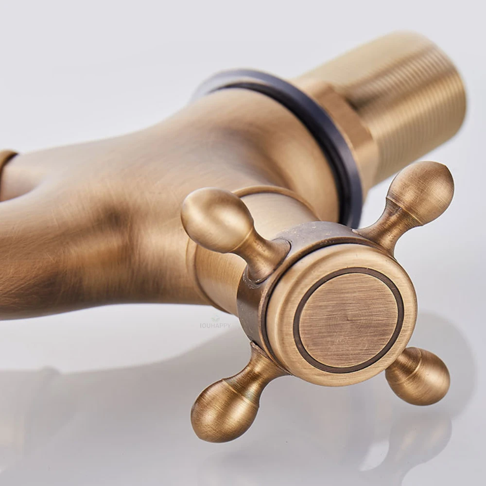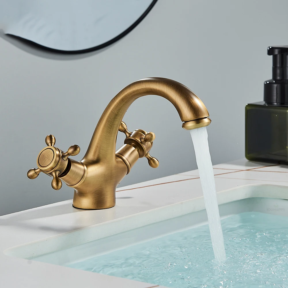 Robinet d'évier Vintage doré, robinets de lavabo à Double poignée, robinet d'eau monté sur le pont, robinet de lavabo de salle de bains rétro en laiton, accessoires pour la maison