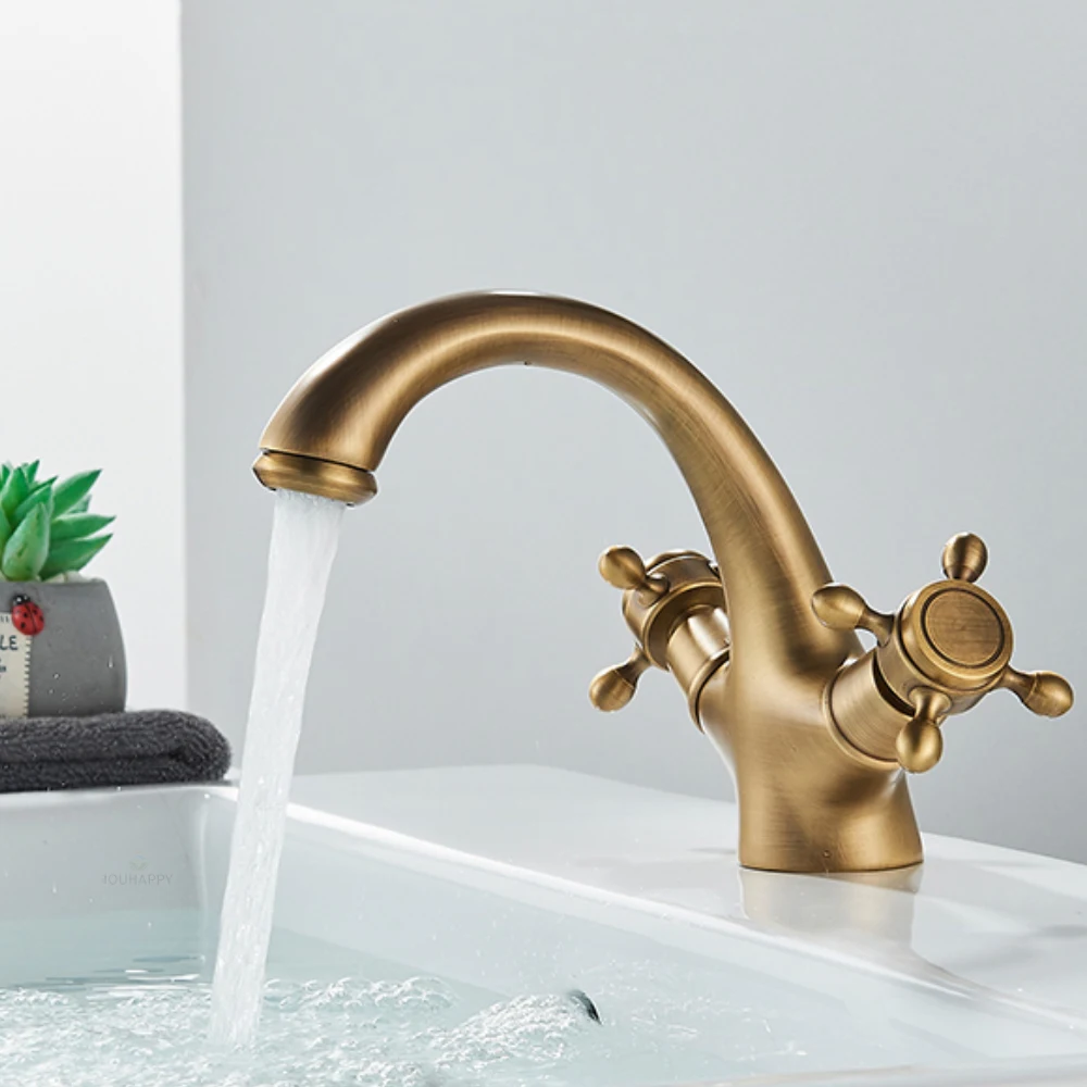 Robinet d'évier Vintage doré, robinets de lavabo à Double poignée, robinet d'eau monté sur le pont, robinet de lavabo de salle de bains rétro en laiton, accessoires pour la maison
