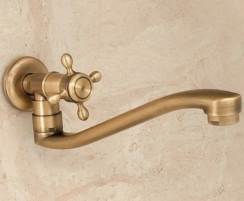 Robinet d'extérieur Antique en laiton massif brossé, bec de robinet froid plus long, robinet de bain, douche, robinet de vadrouille froide simple Kmmoun