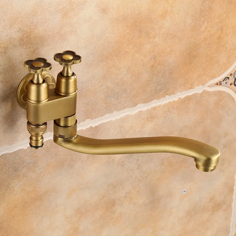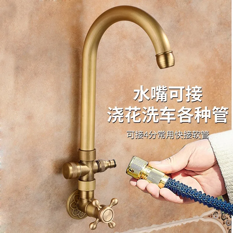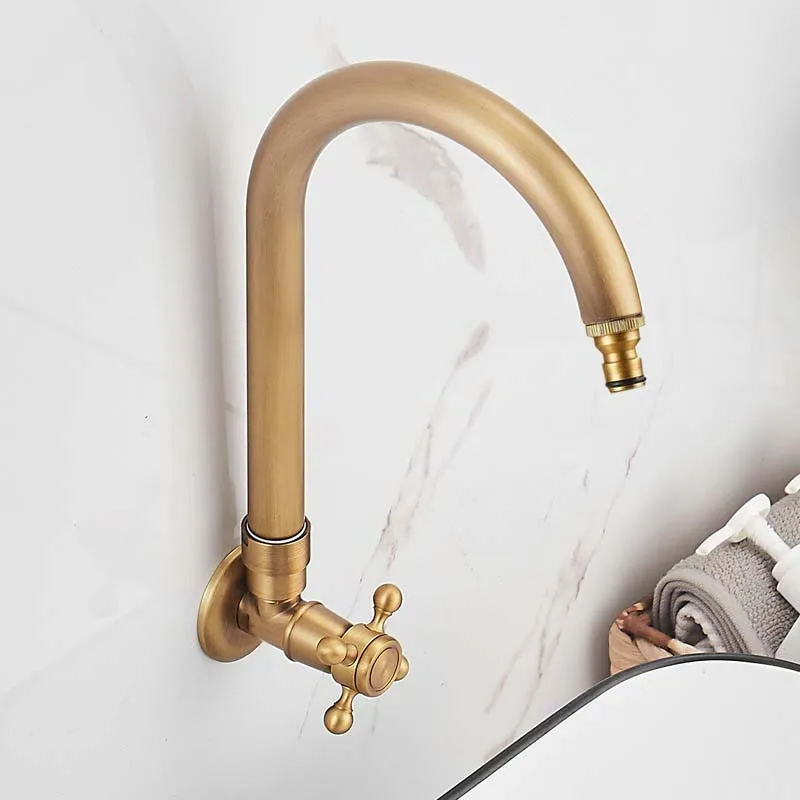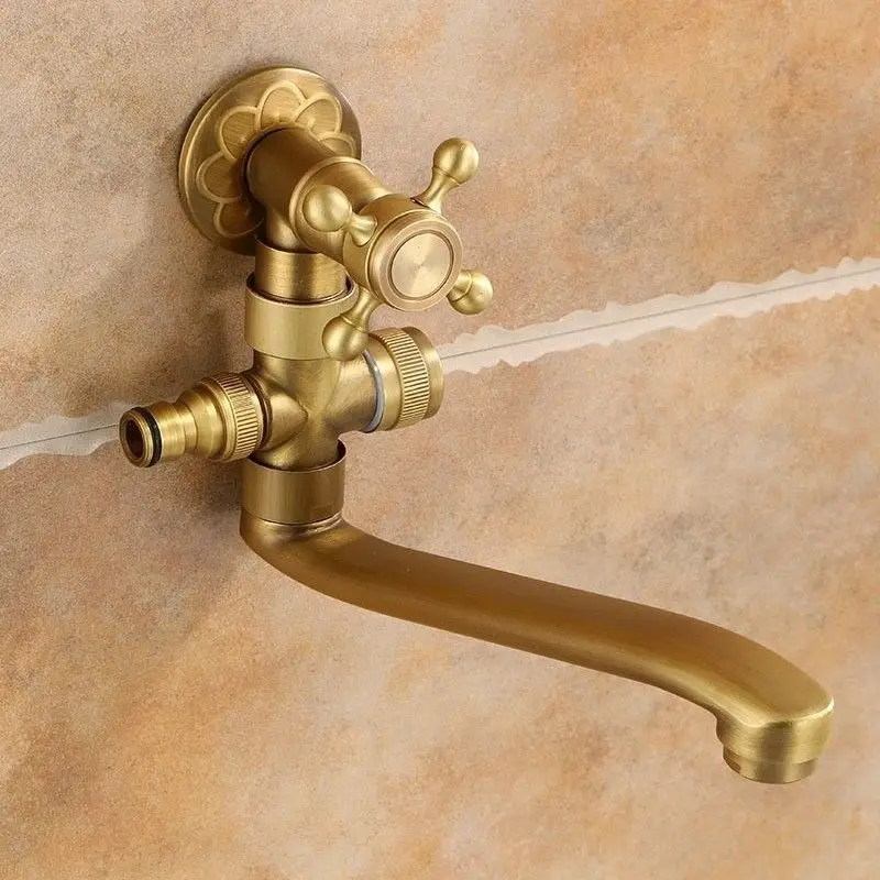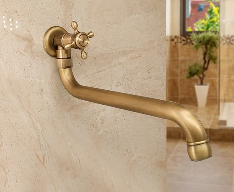 Robinet d'extérieur Antique en laiton massif brossé, bec de robinet froid plus long, robinet de bain, douche, robinet de vadrouille froide simple Kmmoun
