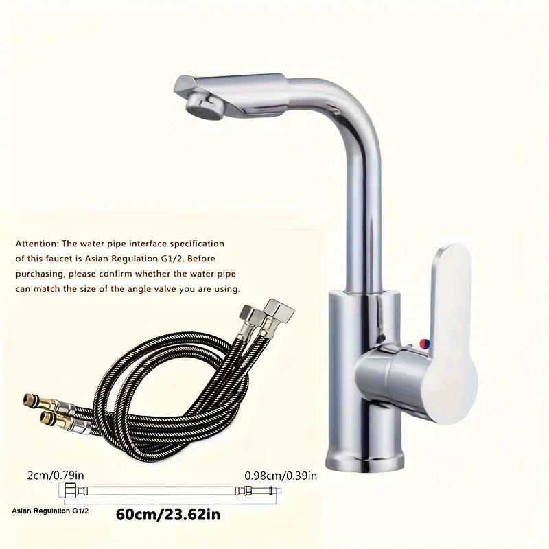 Robinet en acier inoxydable chromé, salle de bains, cuisine, évier, poignée unique, double commande, tuyaux d’entrée G1/2 pour eau chaude et froideRobinet en acier inoxydable chromé, salle de bains, cuisine, évier, poignée unique, double commande, tuyaux d’entrée G1/2 pour eau chaude et froide