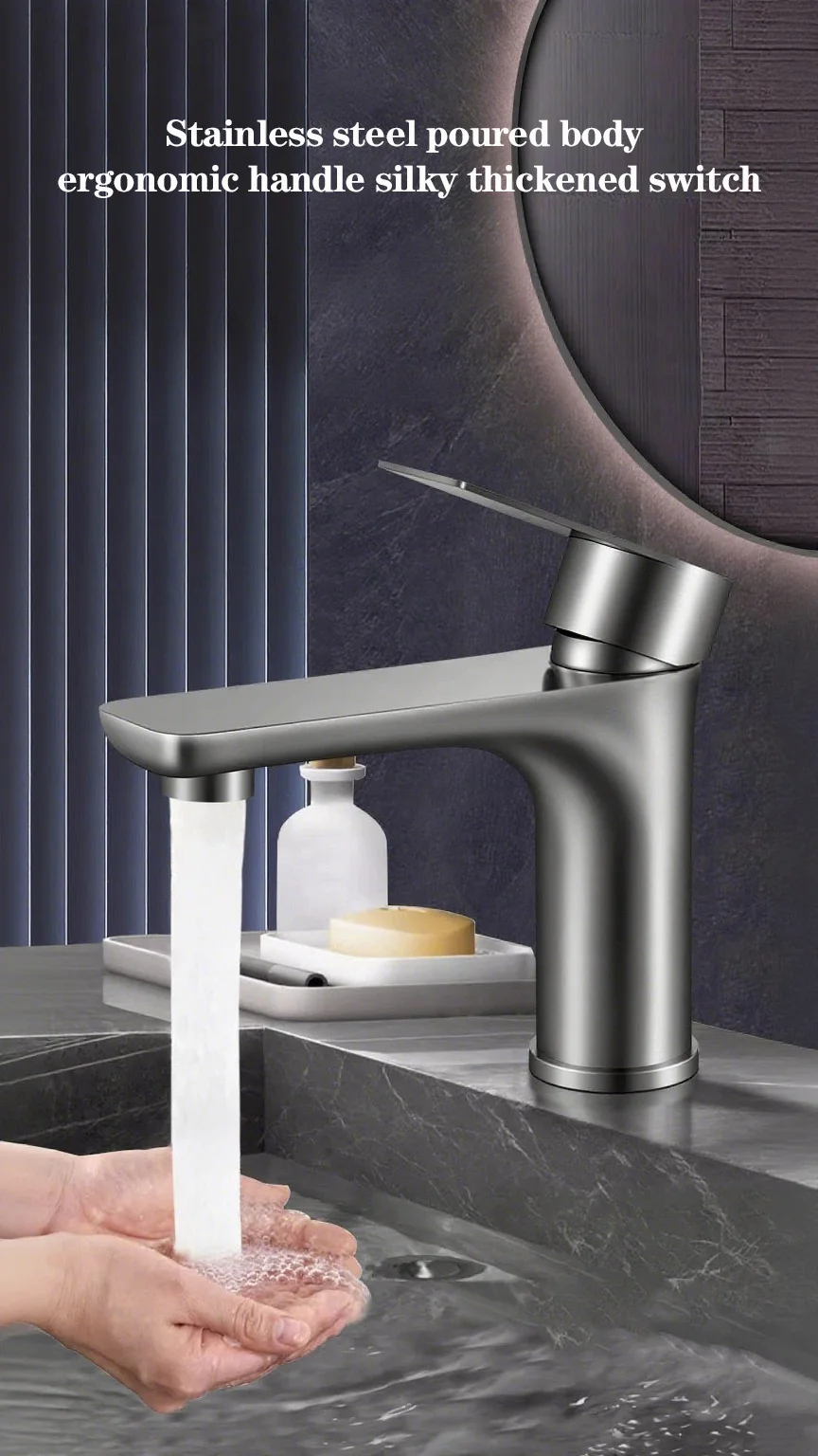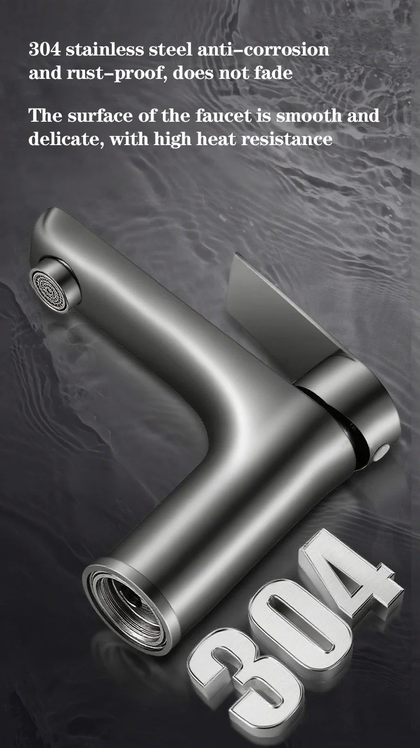 Robinet d’eau chaude et froide en acier inoxydable, robinet d’évier de salle de bains à double commande, résistant aux éclaboussures pour la maison, armoire de cuisine, lavabo