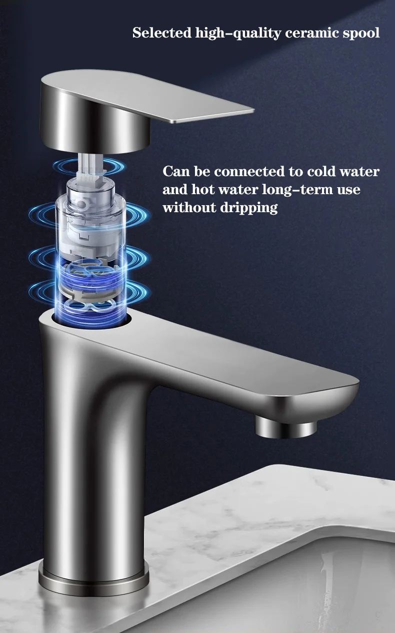 Double mode chaud et froid :Le noyau de valve en céramique assure un contrôle précis de la température, aucune fuite, adapté à l’eau chaude et à l’eau froide.