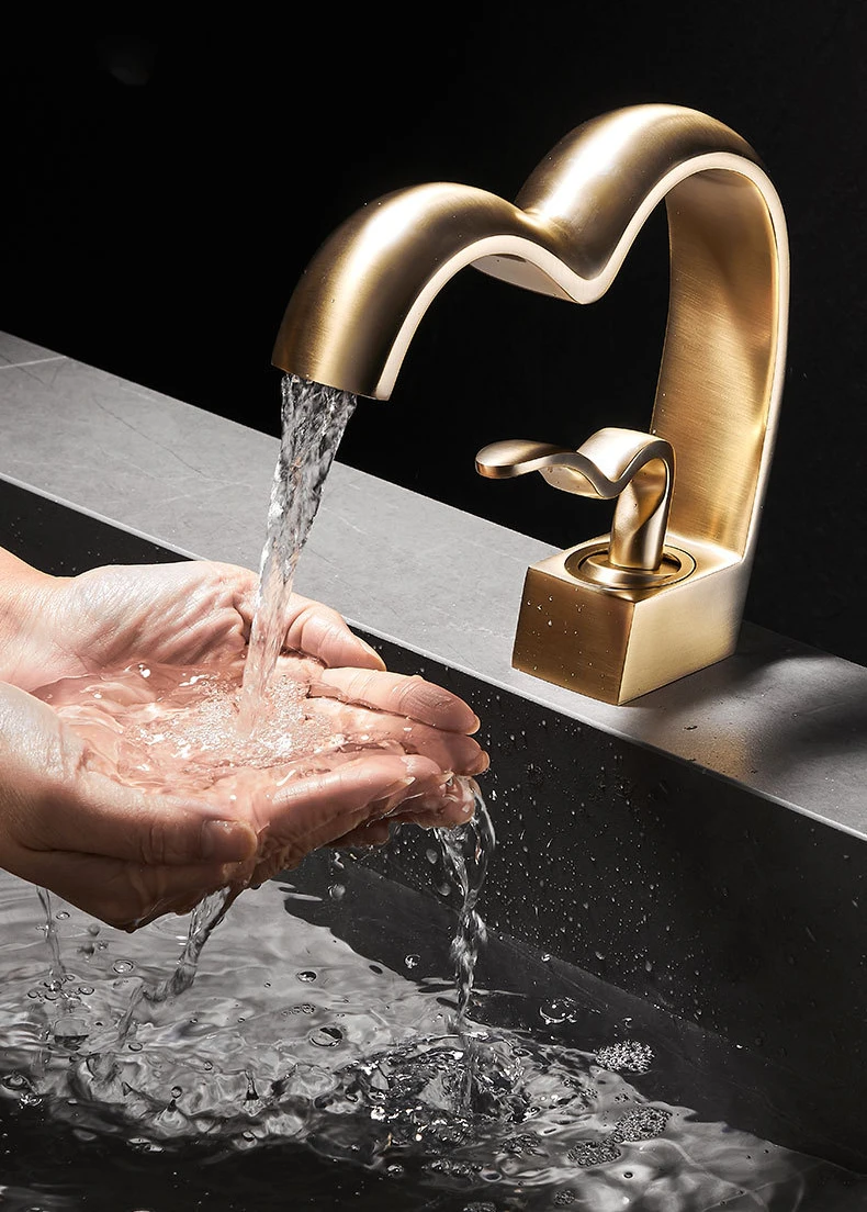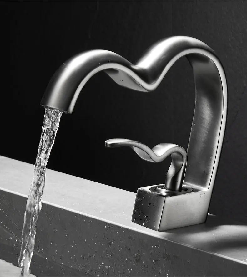 Laiton Salle De Bains Cascade Robinet Chaud Froid Bassin Évier Robinet Creative En Forme De Coeur Bain Vanité Mélangeur Robinets torneira pia banheiro