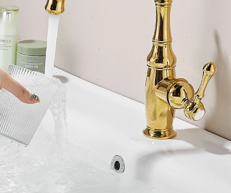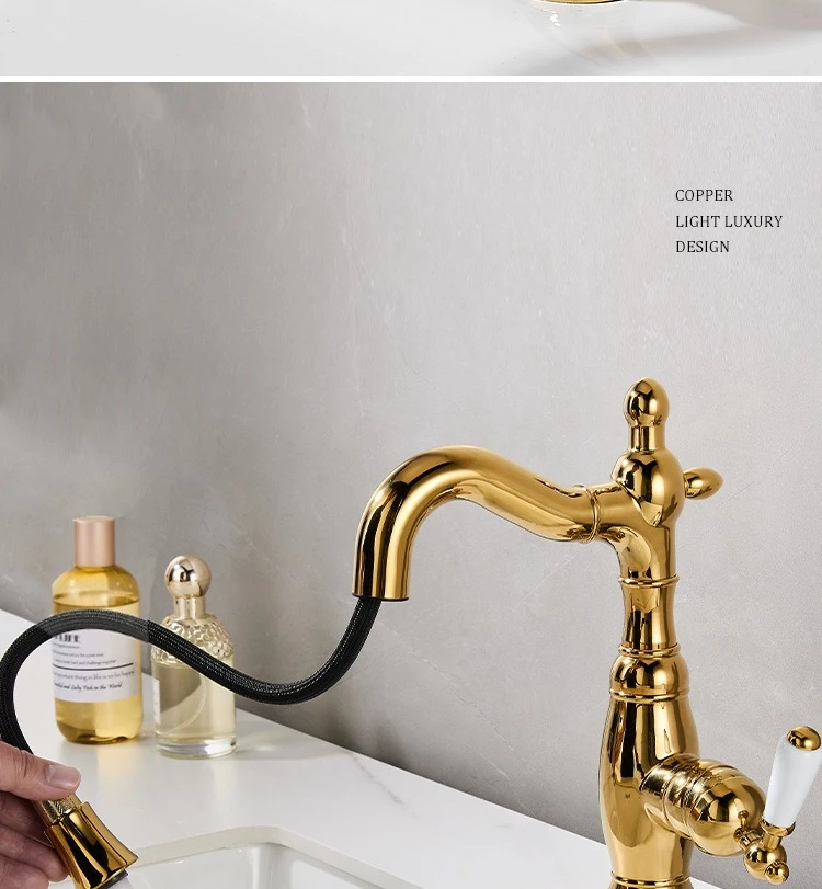 Robinet extractible rétro tout en cuivre, salle de bains domestique, armoire de salle de bains, lavabo, robinet pivotant froid et chaud |