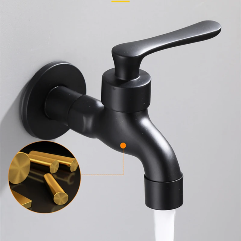 Robinet froid simple en laiton noir, robinet de salle de bains mural pour Machine à laver, vadrouille de toilette, piscine, robinet de jardin extérieur