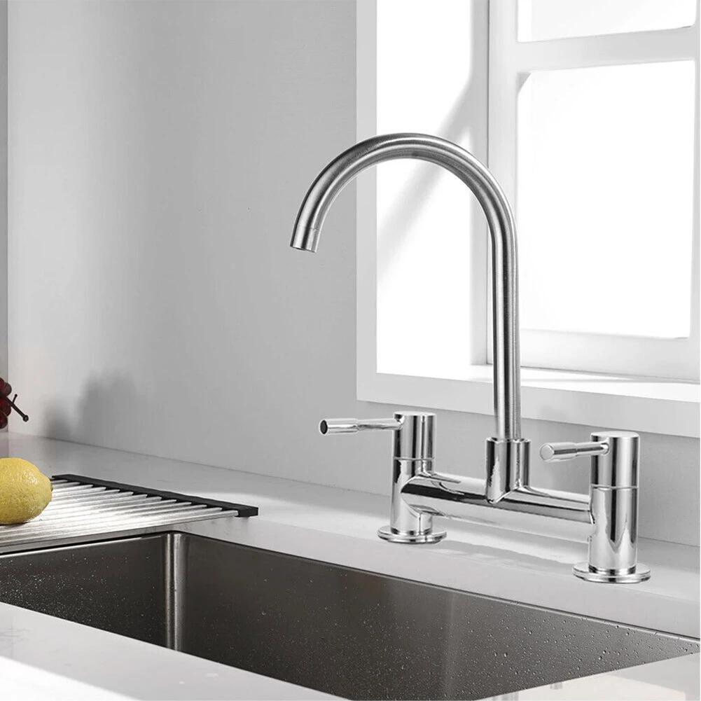 Robinet mitigeur d’eau chaude et froide à Double poignée, robinet d’évier de cuisine pivotant à degrés monté sur le pont, robinets de cuisine de salle de bains