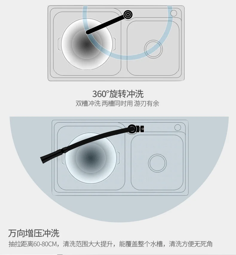 • Rotule à 360 degrés pour une meilleure accessibilité et un nettoyage facilité de l'évier