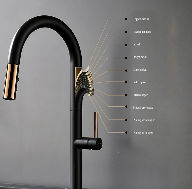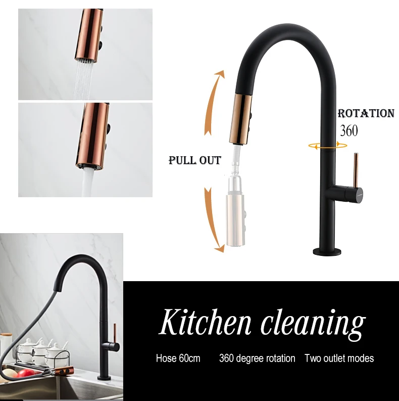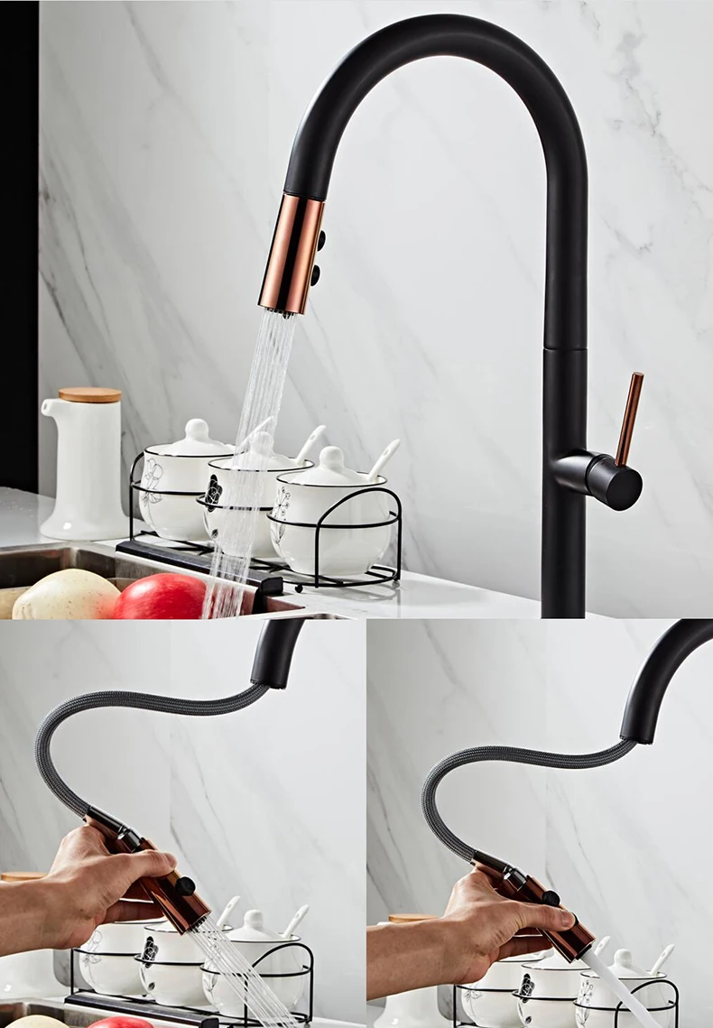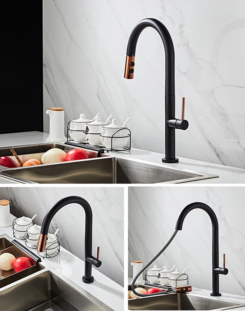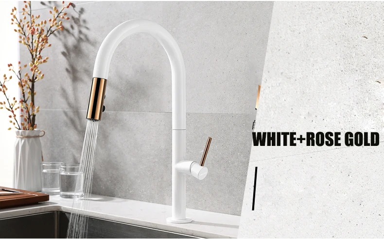 Robinet de cuisine extractible nouvellement arrivé, robinet mitigeur d’évier en or Rose et blanc, rotation à 360 degrés, robinets mélangeurs de cuisine, robinet de cuisine