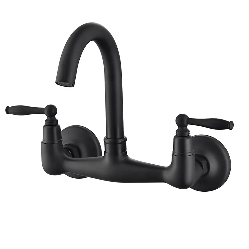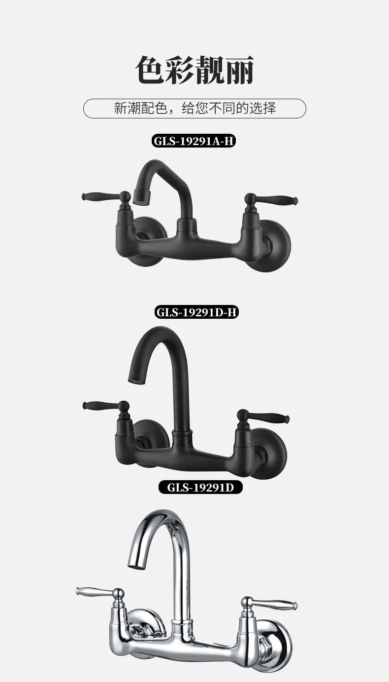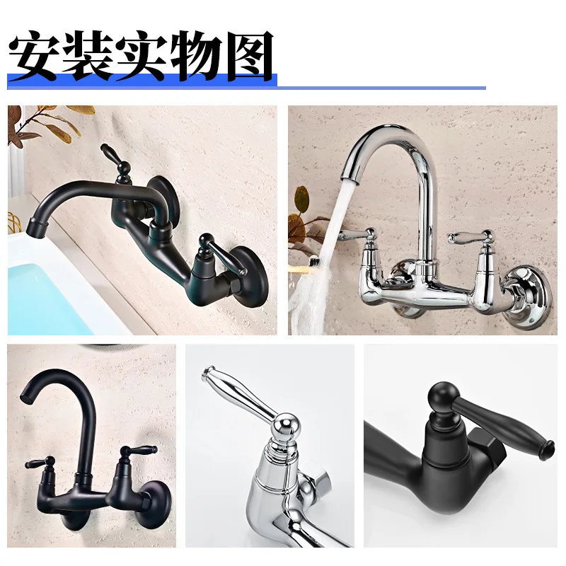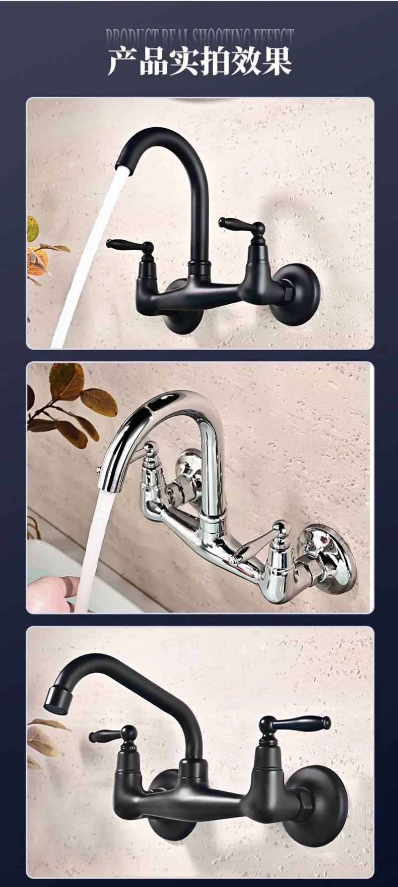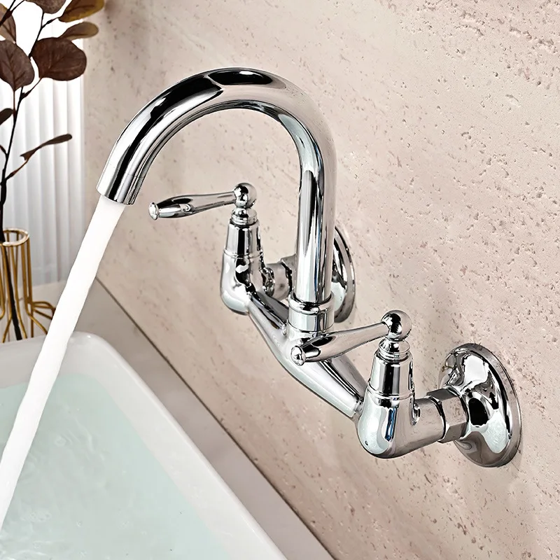 Robinet de lavabo de salle de bain en laiton de style européen robinet de lavabo d’eau chaude froide mural mitigeur de lavabo en cuivre à 2 poignées de luxe