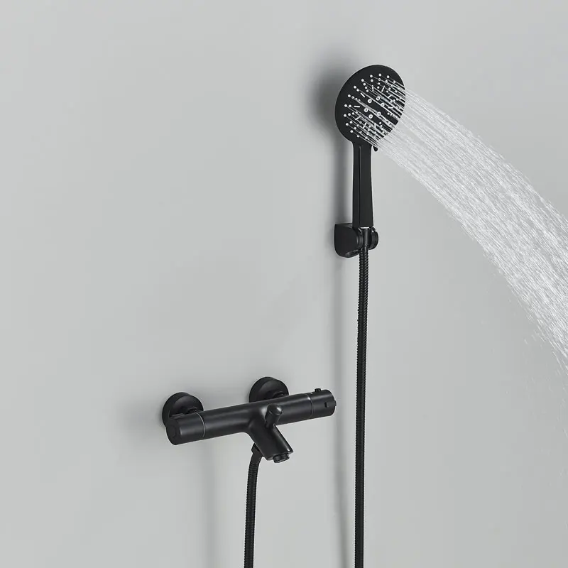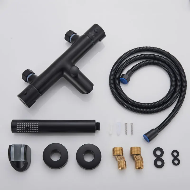 Ensemble de douche thermostatique en Chrome noir, montage mural encastré, mitigeur chaud et froid, robinet de salle de bain