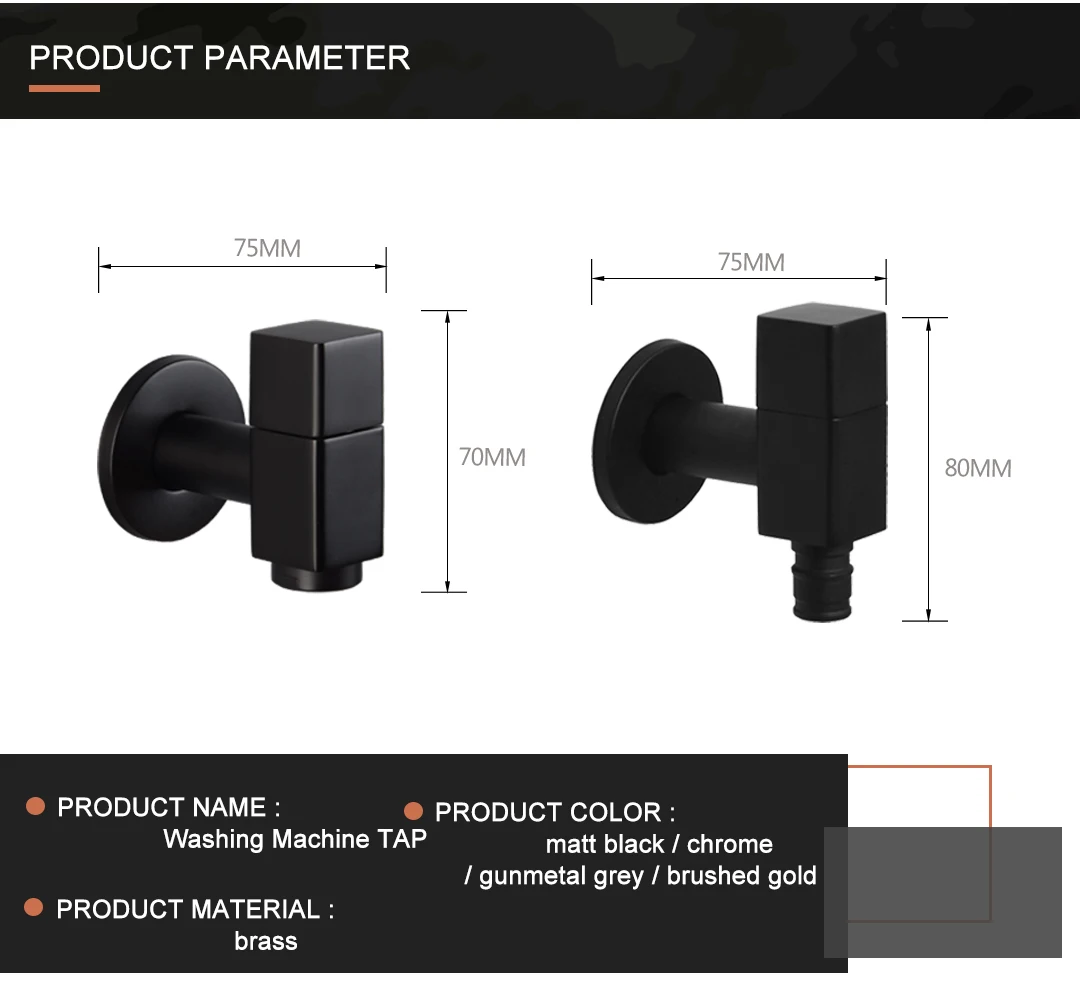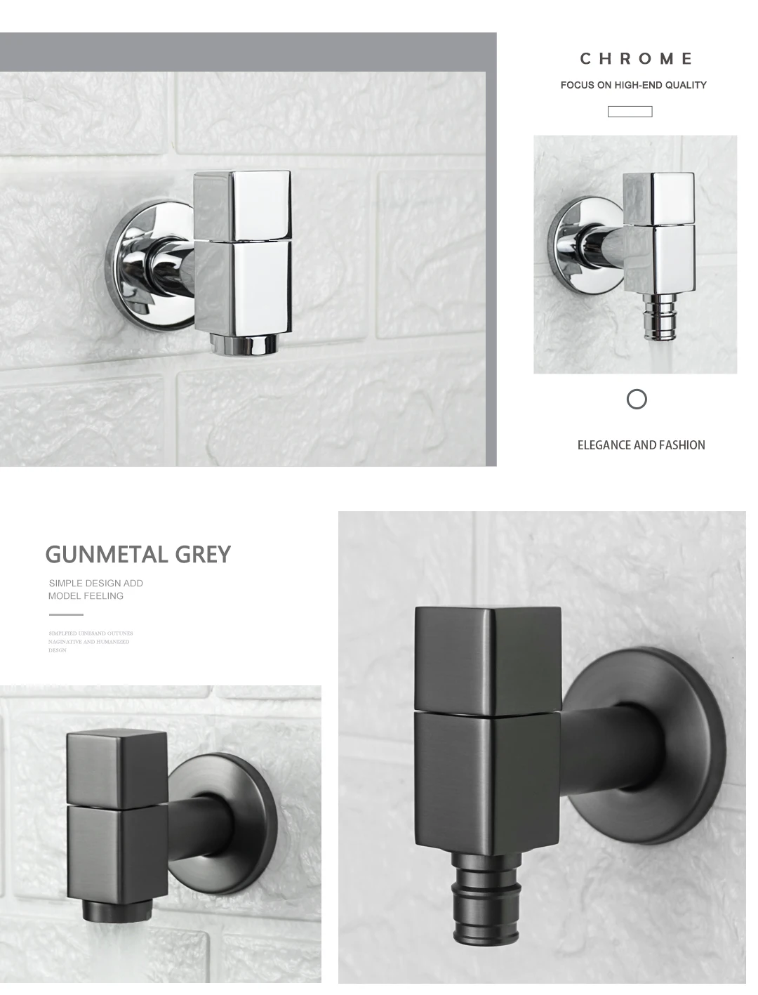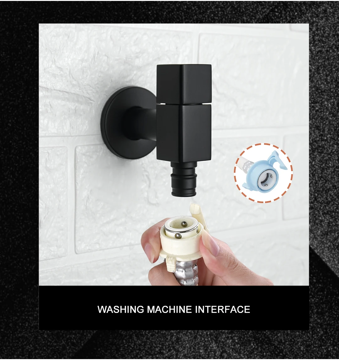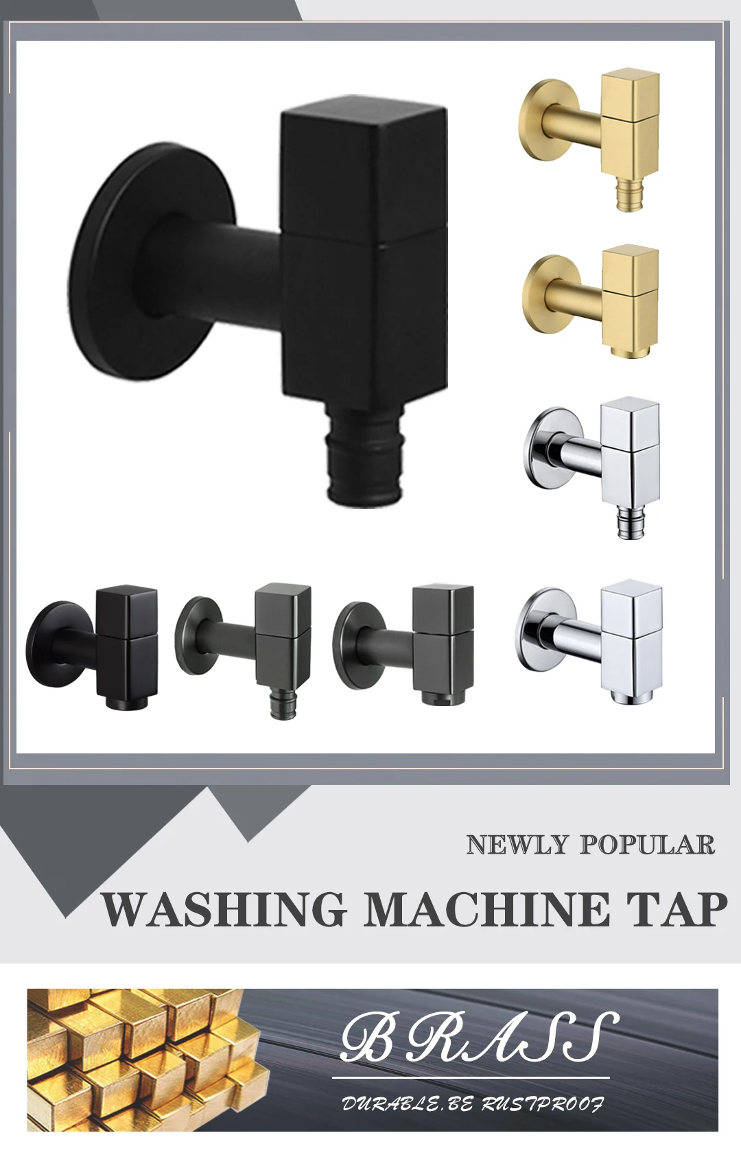 Robinet de machine à laver robinet extérieur jardin vadrouille piscine robinets salle de bain carré mural en laiton massif évier lavage robinet d’eau froide