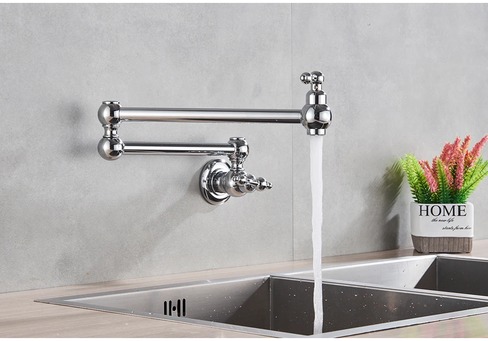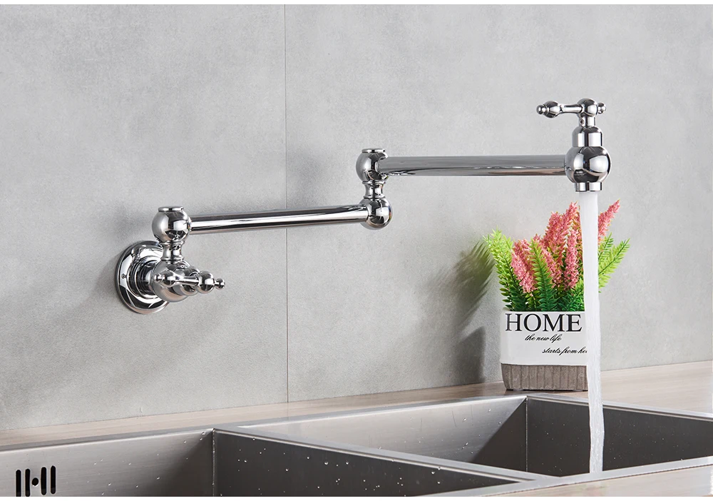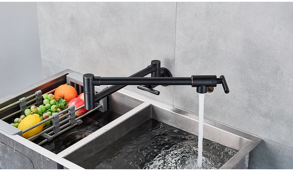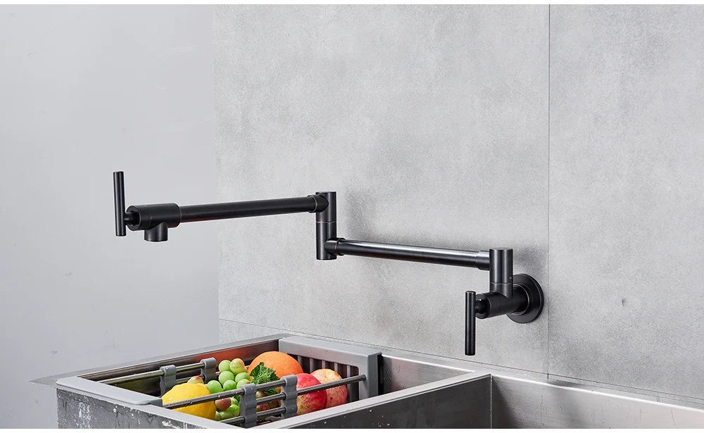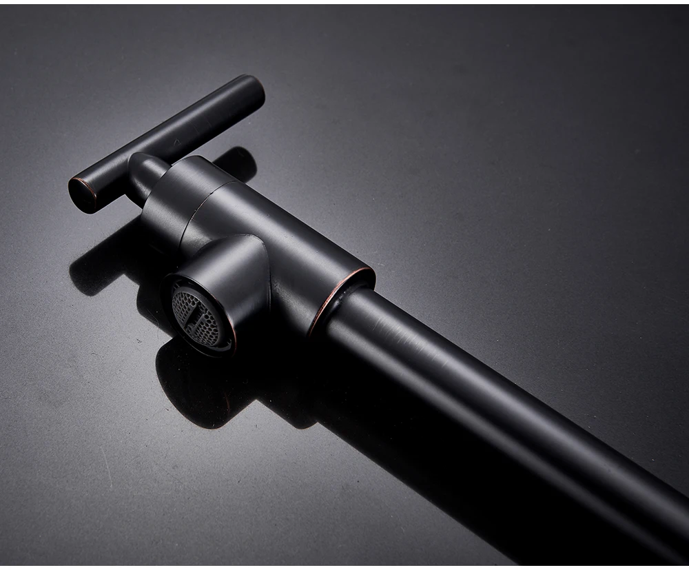Robinet mural noir chromé, robinet d’eau froide unique, bec rotatif à 360 degrés, robinet de lavage, col pliant, salle de bains, cuisine