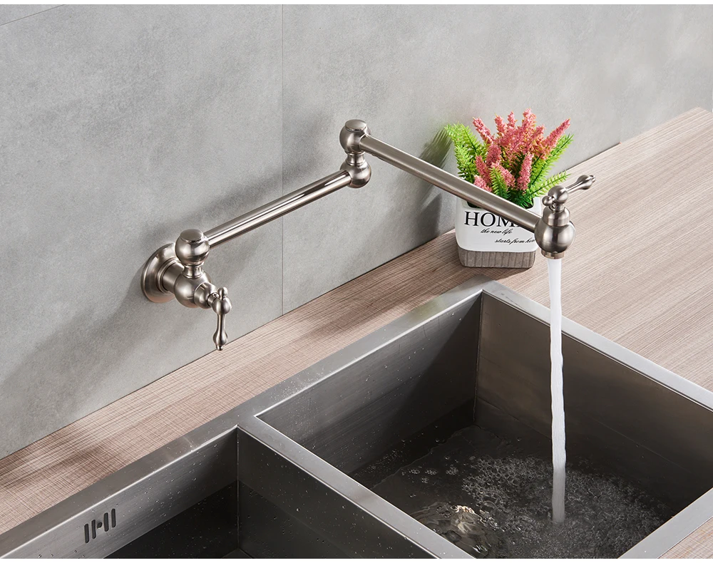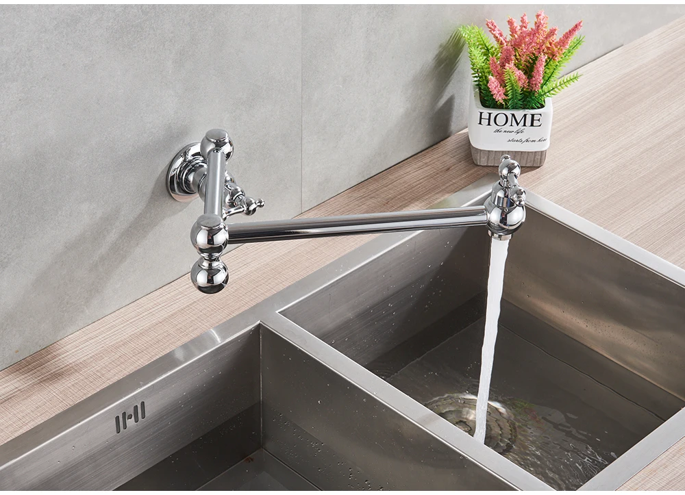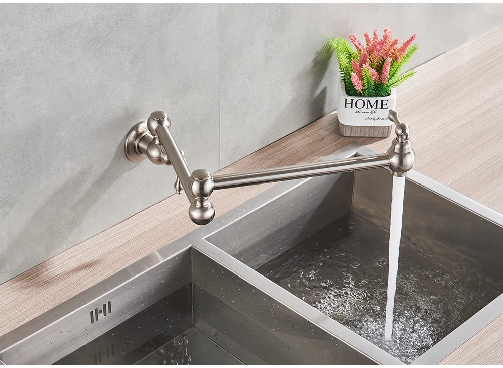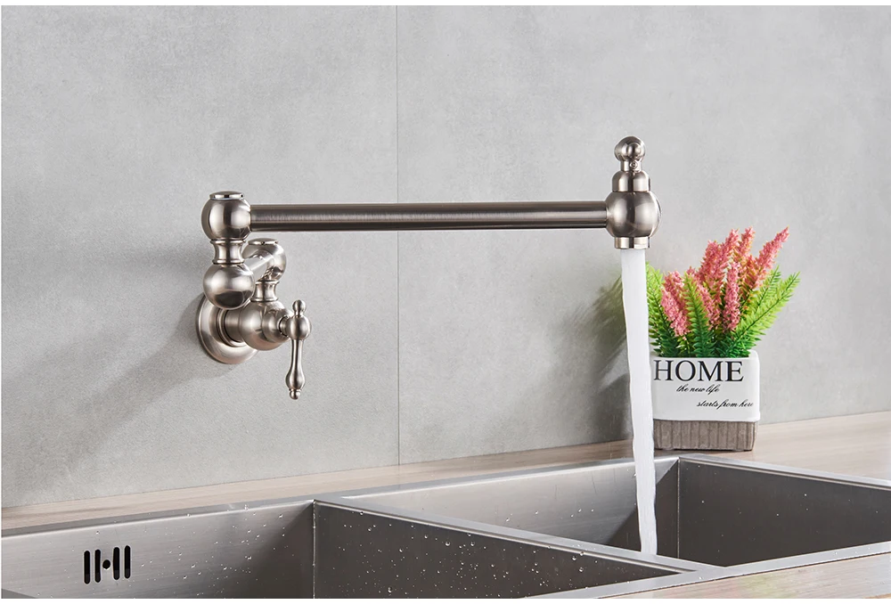 Robinet mural noir chromé, robinet d’eau froide unique, bec rotatif à 360 degrés, robinet de lavage, col pliant, salle de bains, cuisine