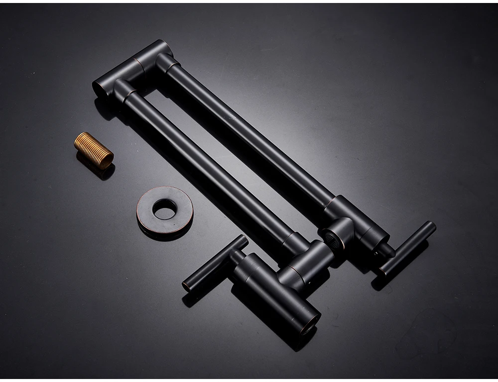 Robinet mural noir chromé, robinet d’eau froide unique, bec rotatif à 360 degrés, robinet de lavage, col pliant, salle de bains, cuisine