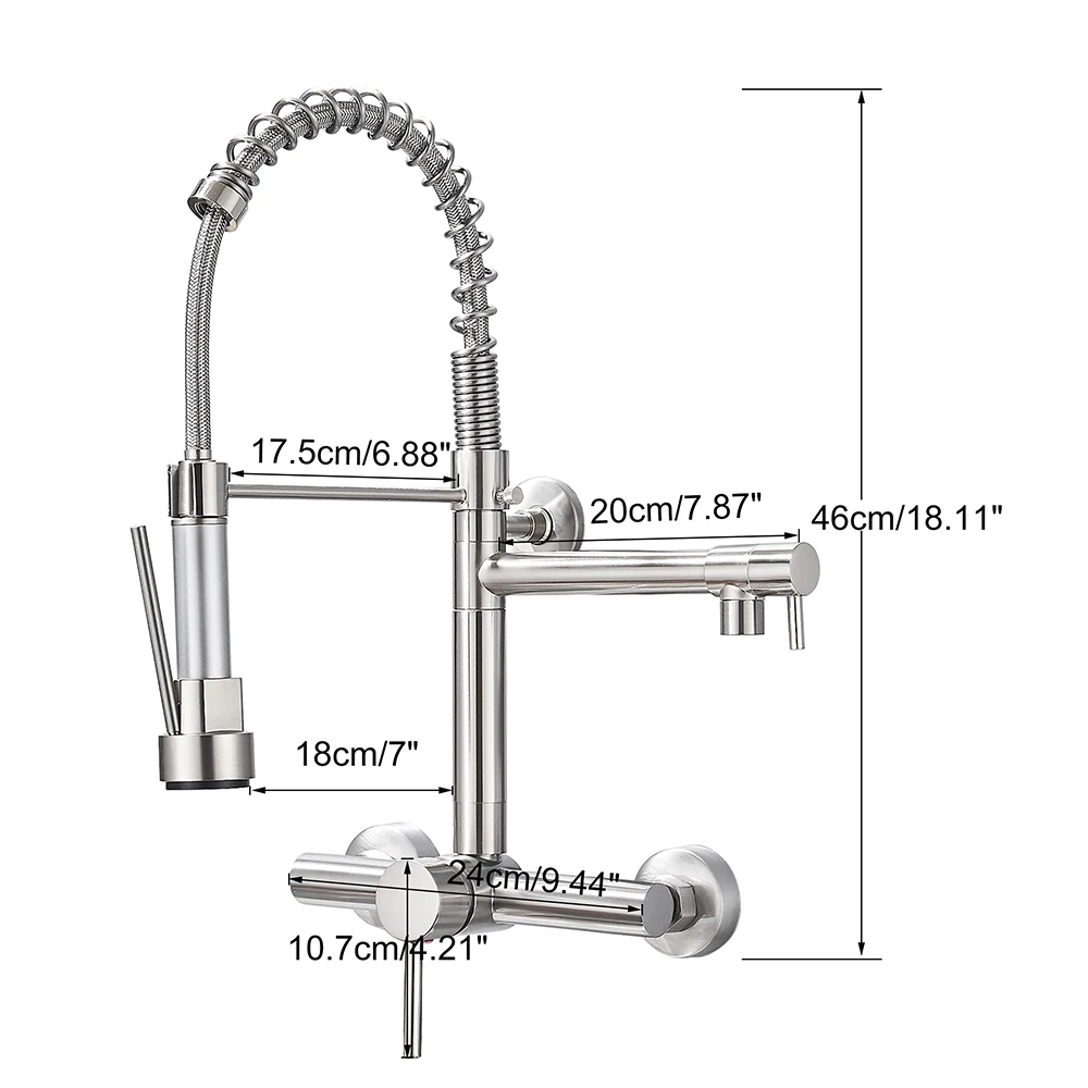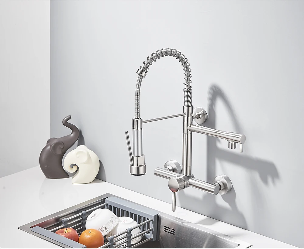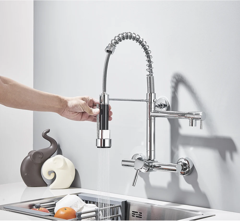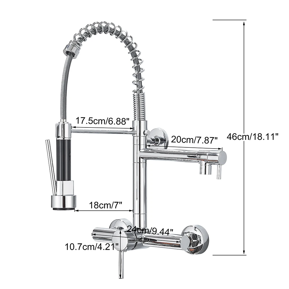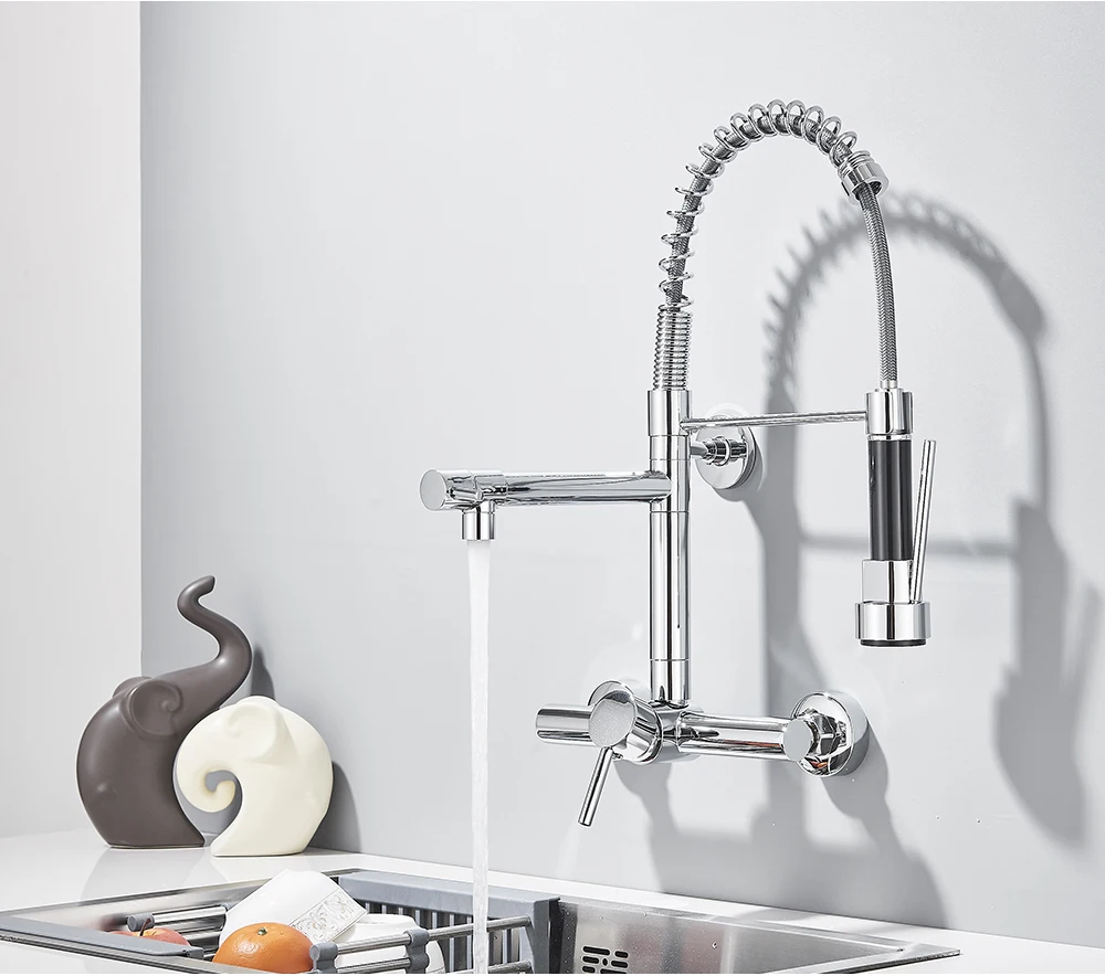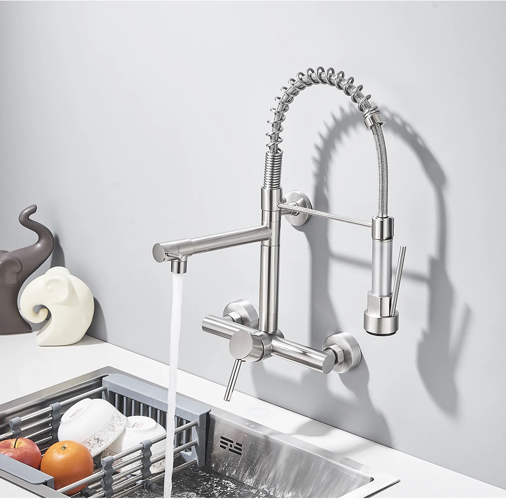 Robinet de cuisine pivotant mural, robinet d'évier à 360 degrés, robinet de cuisine à poignée unique, robinet mitigeur d'évier pivotant en laiton chromé