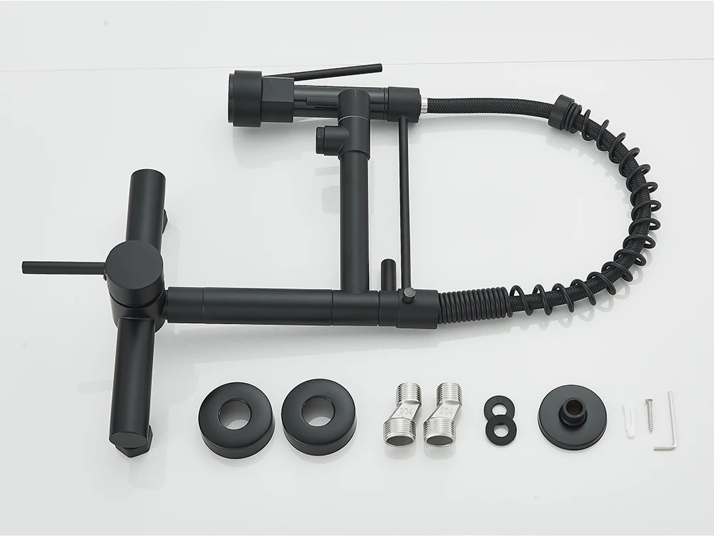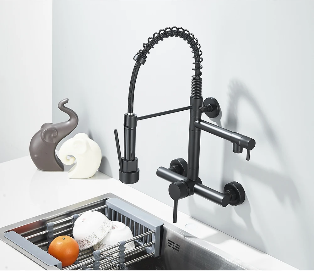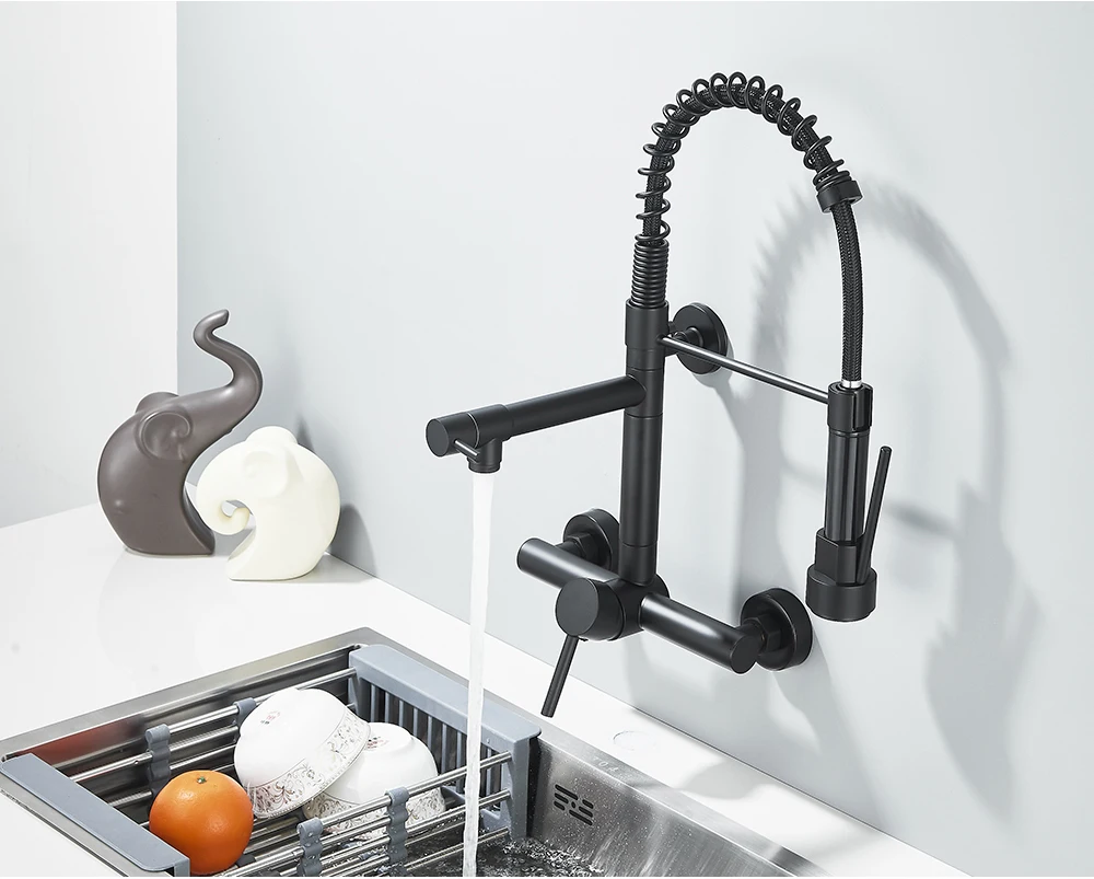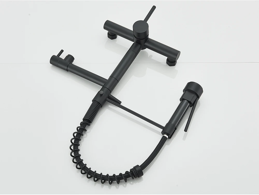 Robinet mural noir pour cuisine, robinet d’eau chaude et froide, F/05 et robinet mural, évier de navire, robinet de centre commercial, becs à ressort pour touristes, grue de centre commercial