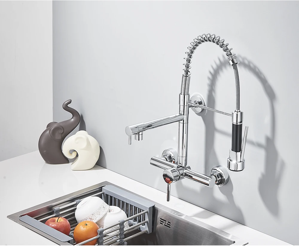 Robinet de cuisine pivotant mural, robinet d’évier à 360 degrés, robinet de cuisine à poignée unique, robinet mitigeur d’évier pivotant en laiton chromé