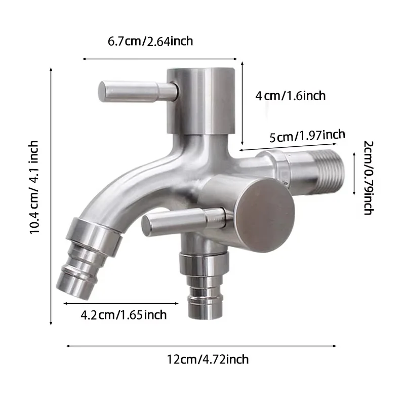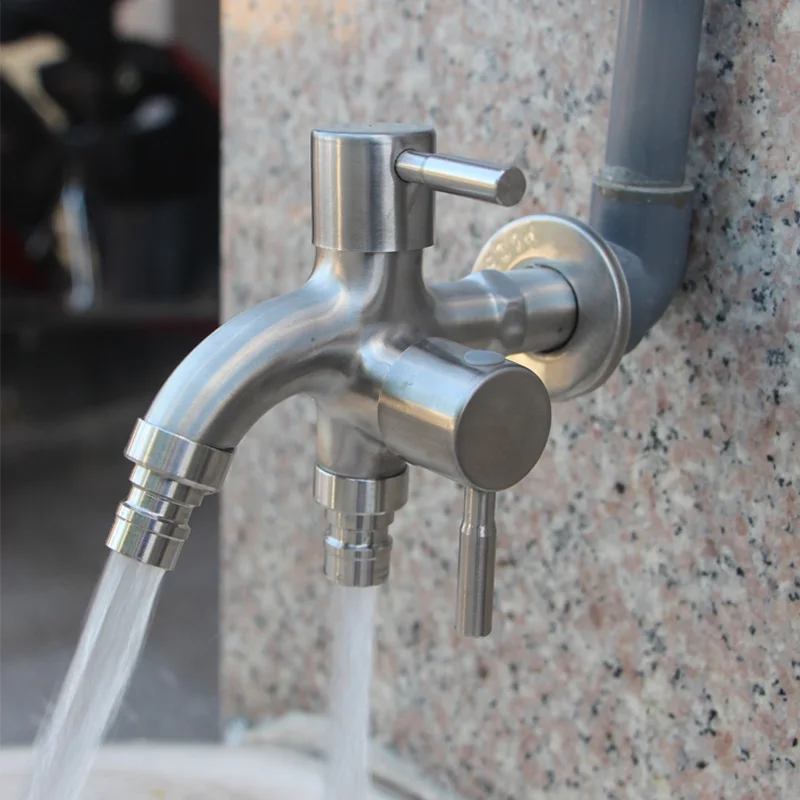 Nom du produit : double robinet pour machine à laver en acier inoxydable 304.