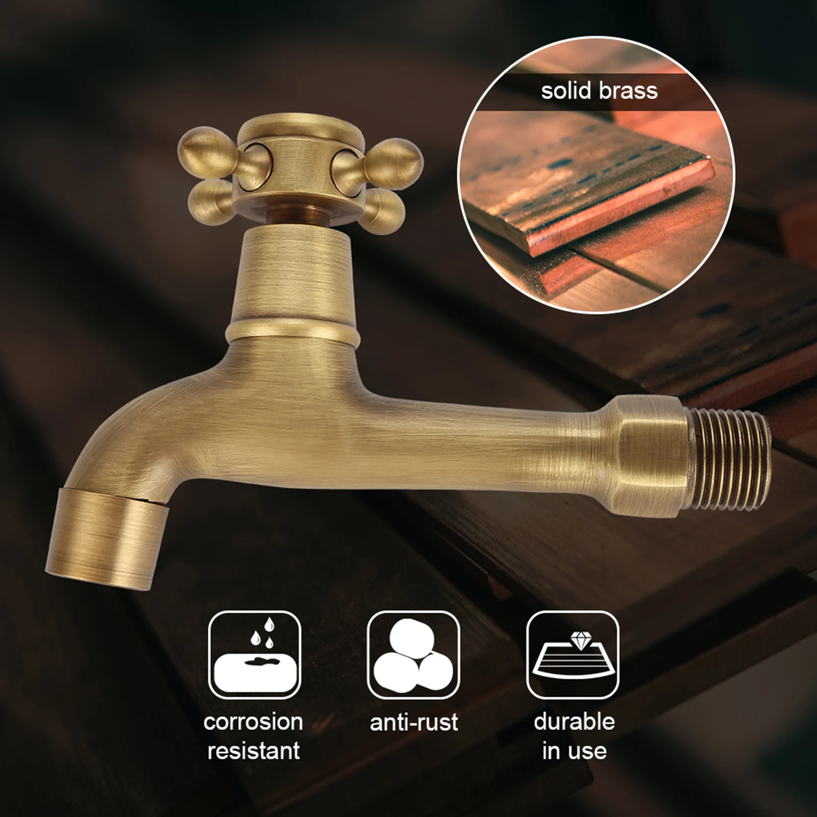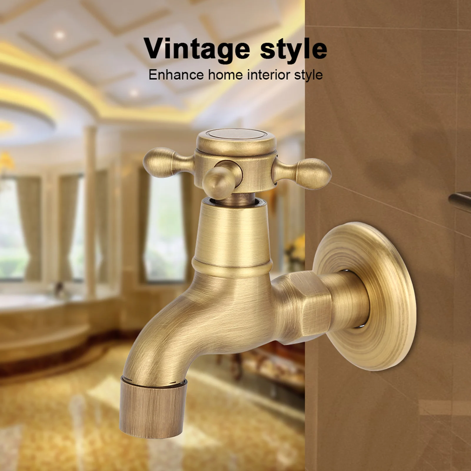 Ce robinet de haute qualité en laiton est résistant à la corrosion et antirouille, plein de style antique. Mural, adapté à la cuisine, la salle de bain, la piscine à vadrouille, etc.