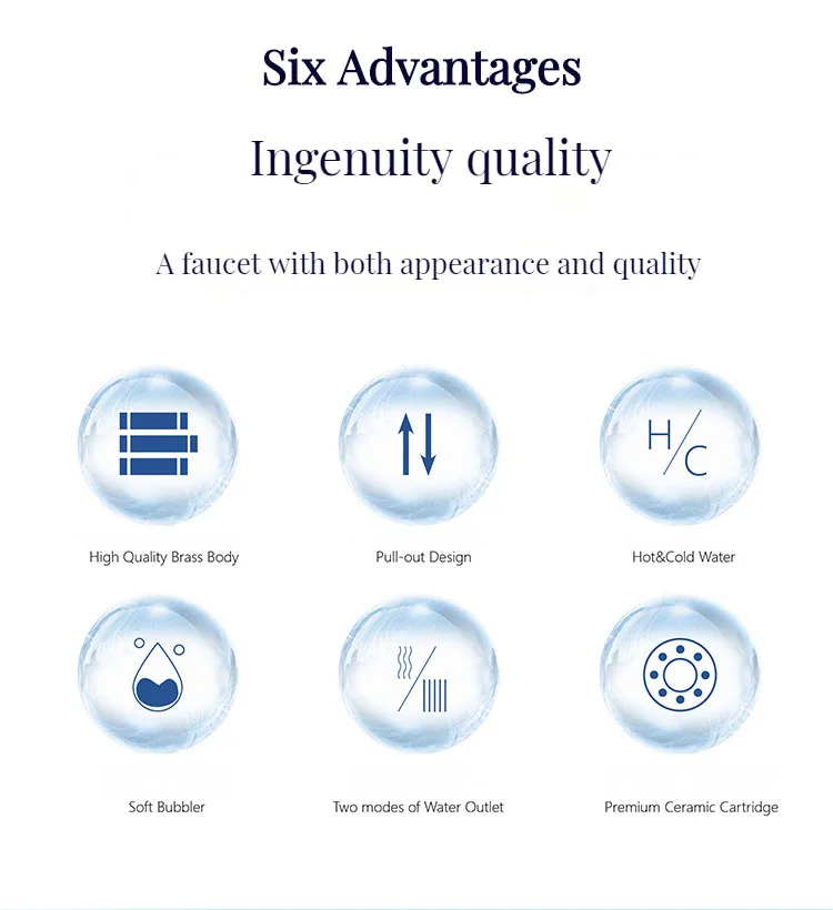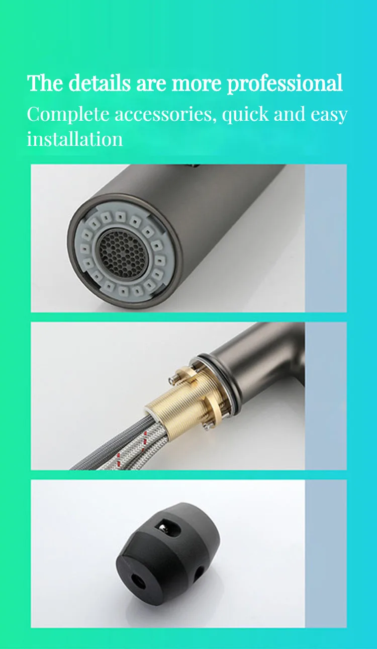 Le paquet comprend : 1 robinet de cuisine + une paire de tuyaux d’eau chaude et froide + accessoire d’installation