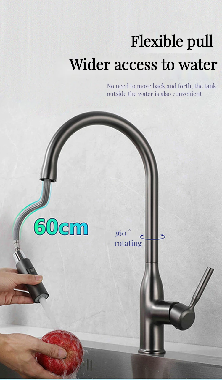 "Cet achat s'est avéré être une excellente décision. Le robinet extractible est d'une grande praticité pour laver la vaisselle et remplir les casseroles. J'apprécie tout particulièrement la rotation à 360° qui permet d'atteindre tous les coins de l'évier. Seul bémol, le pulvérisateur peut parfois être un peu difficile à manipuler, mais dans l'ensemble c'est un produit de très bonne qualité qui s'intègre parfaitement dans ma cuisine."