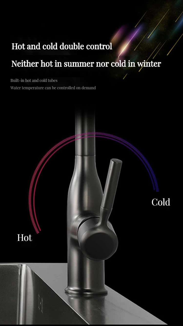 Robinet d’évier de cuisine extractible, robinet d’eau chaude et froide à ressort à une poignée, grue de cuisine