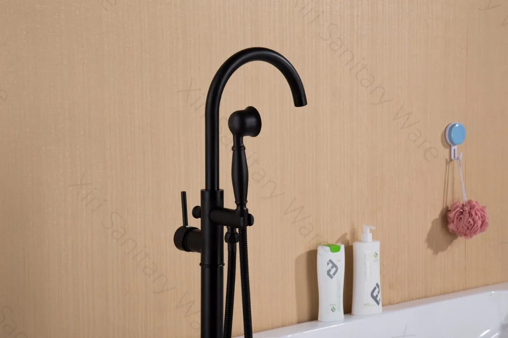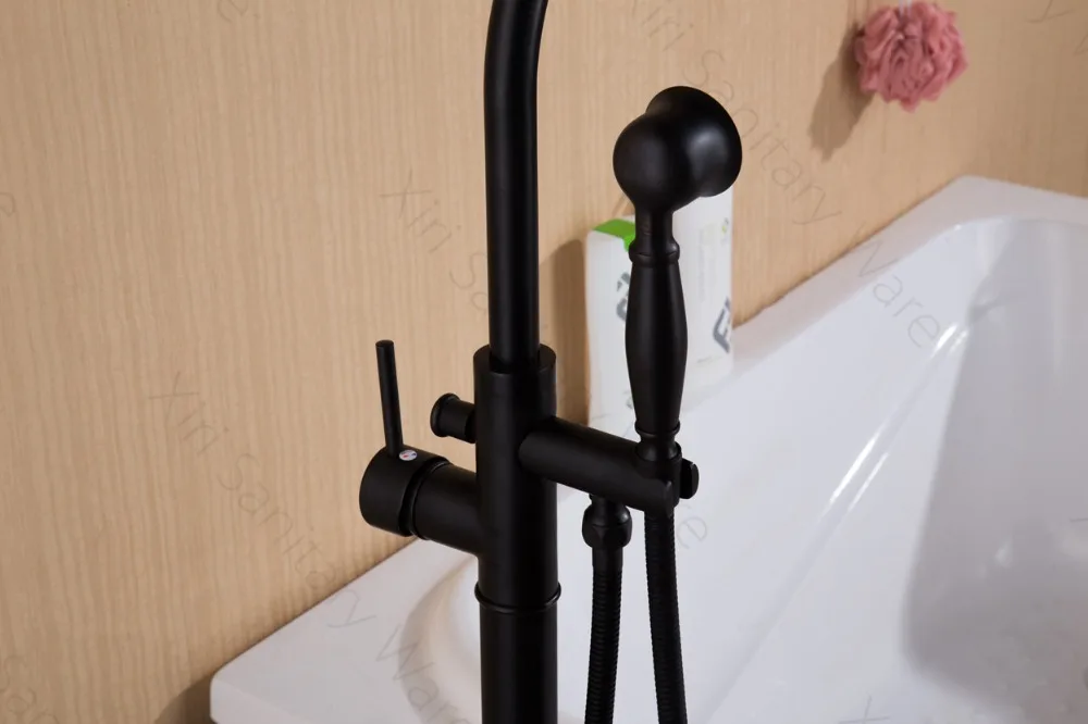 Robinets de baignoire Antique/noir, robinet de baignoire autoportant monté au sol, ensemble de douche, robinet mitigeur de remplissage de baignoire pour salle de bains XT379Robinets de baignoire Antique/noir, robinet de baignoire autoportant monté au sol, ensemble de douche, robinet mitigeur de remplissage de baignoire pour salle de bains XT379