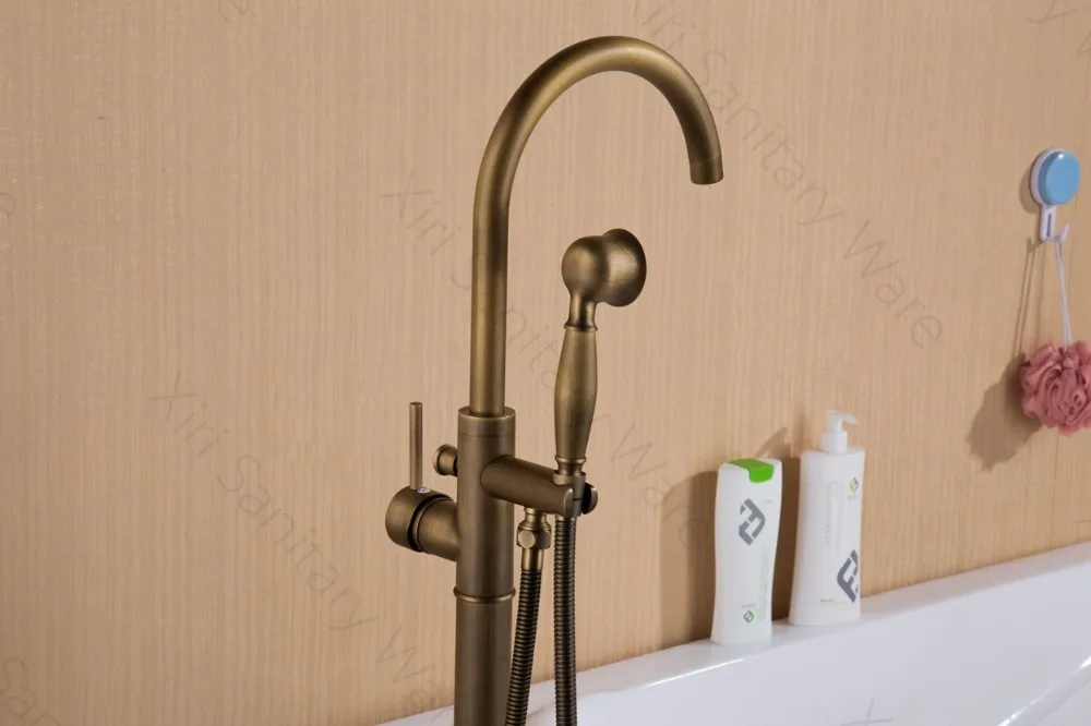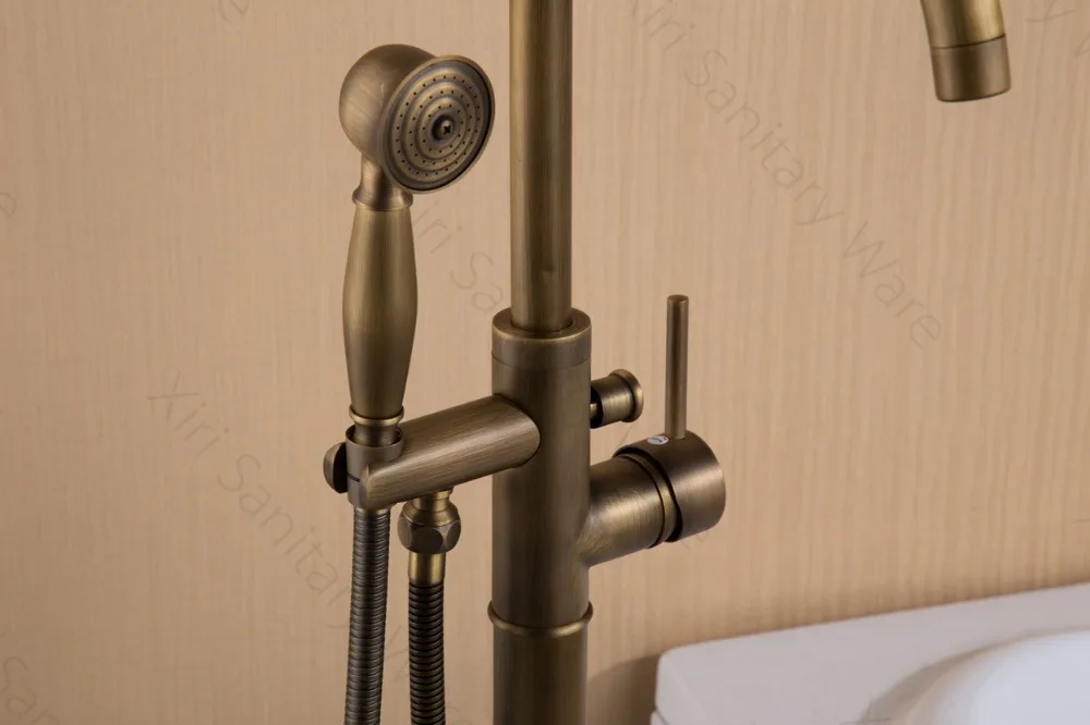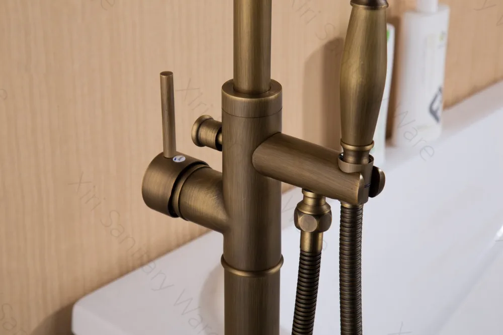 Robinets de baignoire Antique/noir, robinet de baignoire autoportant monté au sol, ensemble de douche, robinet mitigeur de remplissage de baignoire pour salle de bains XT379