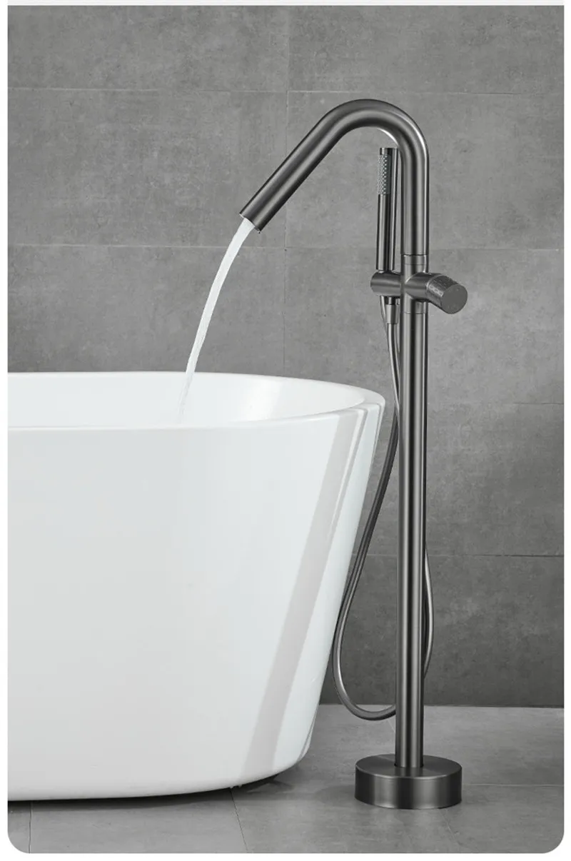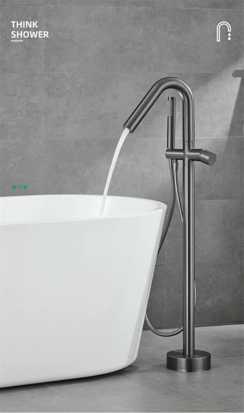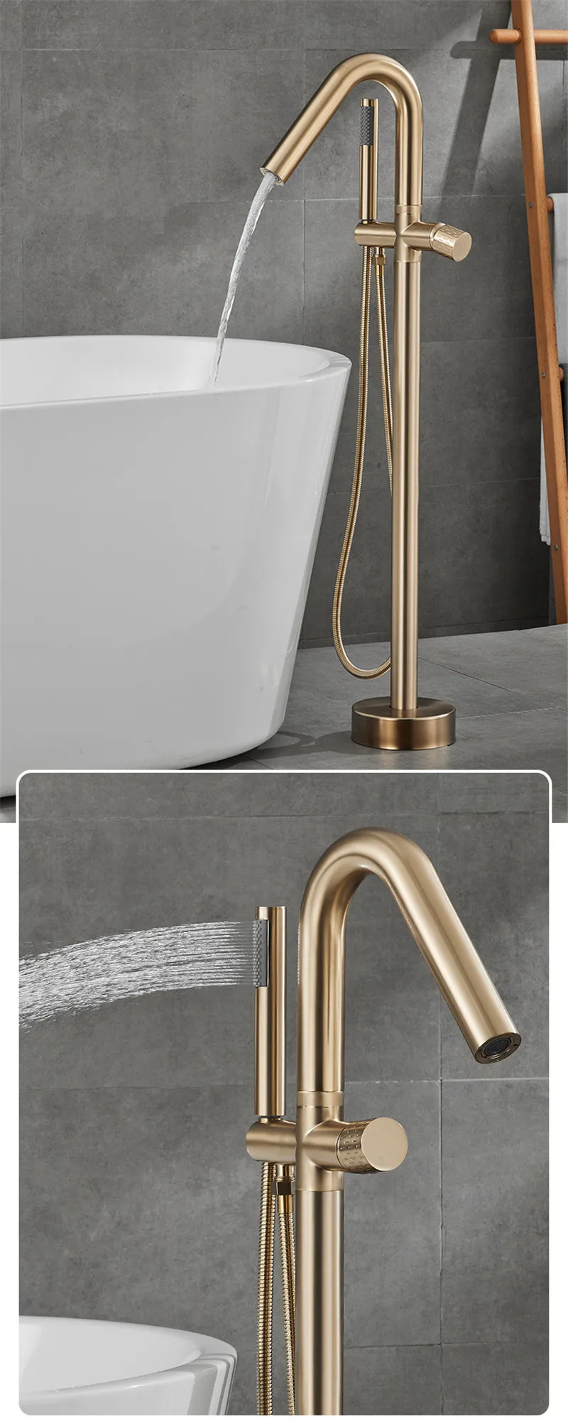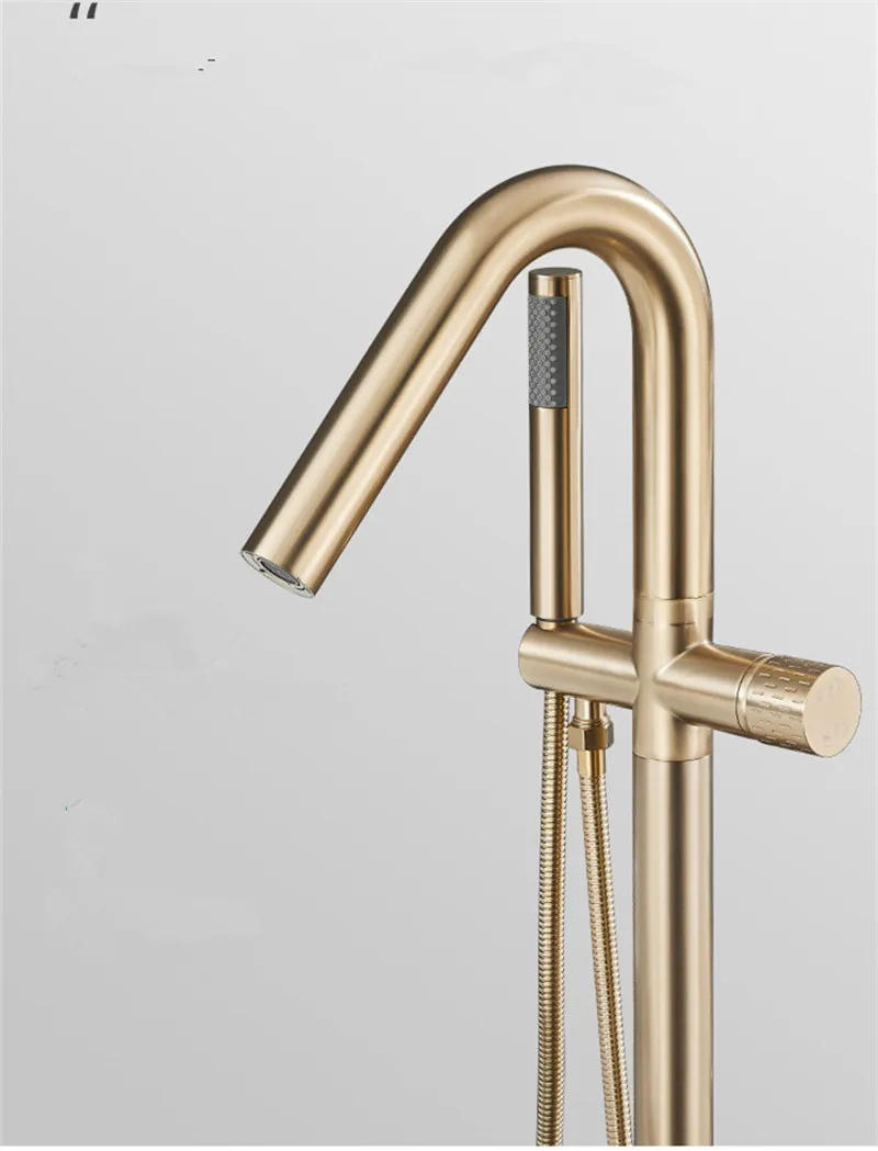 Robinet de baignoire de salle de bain en or brossé au sol + douche à main mitigeurs de baignoire de luxe en bronze antique sur pied