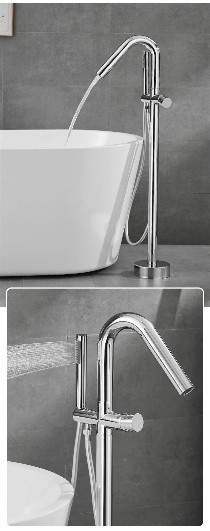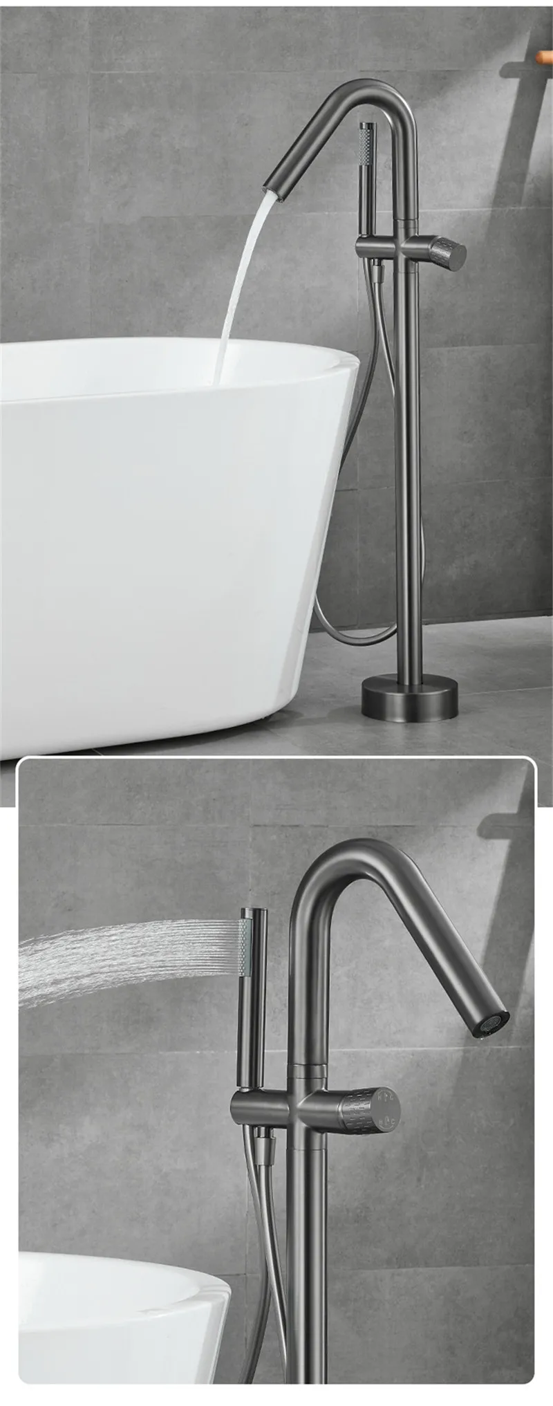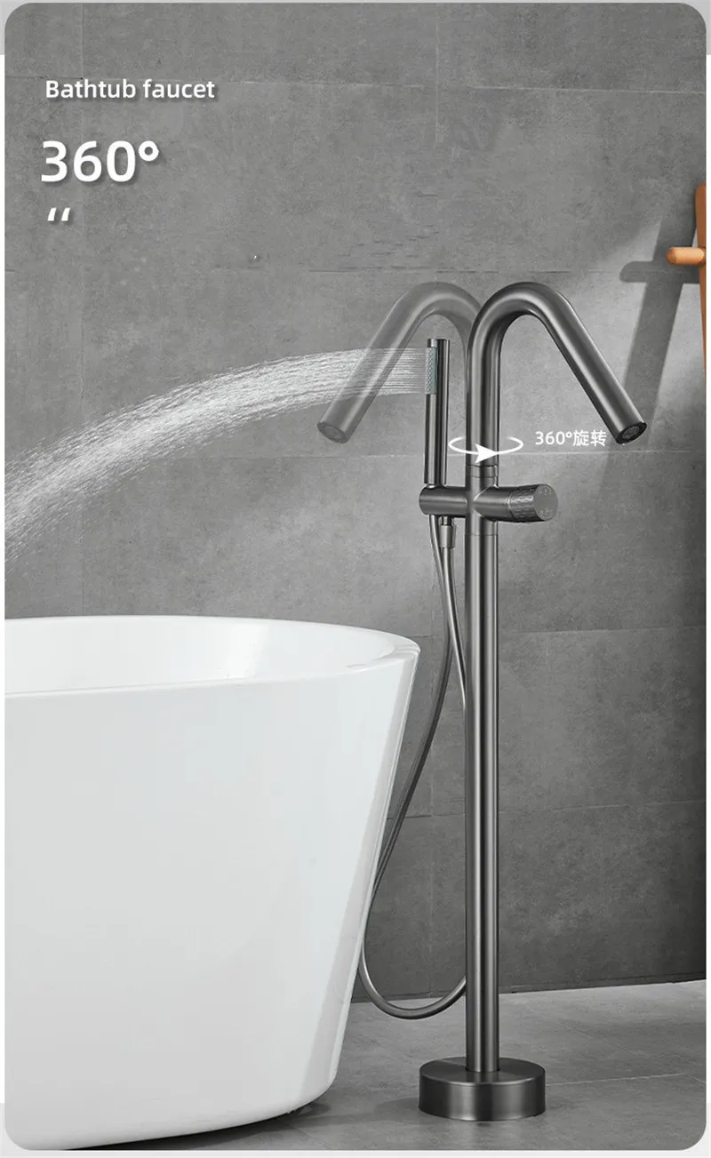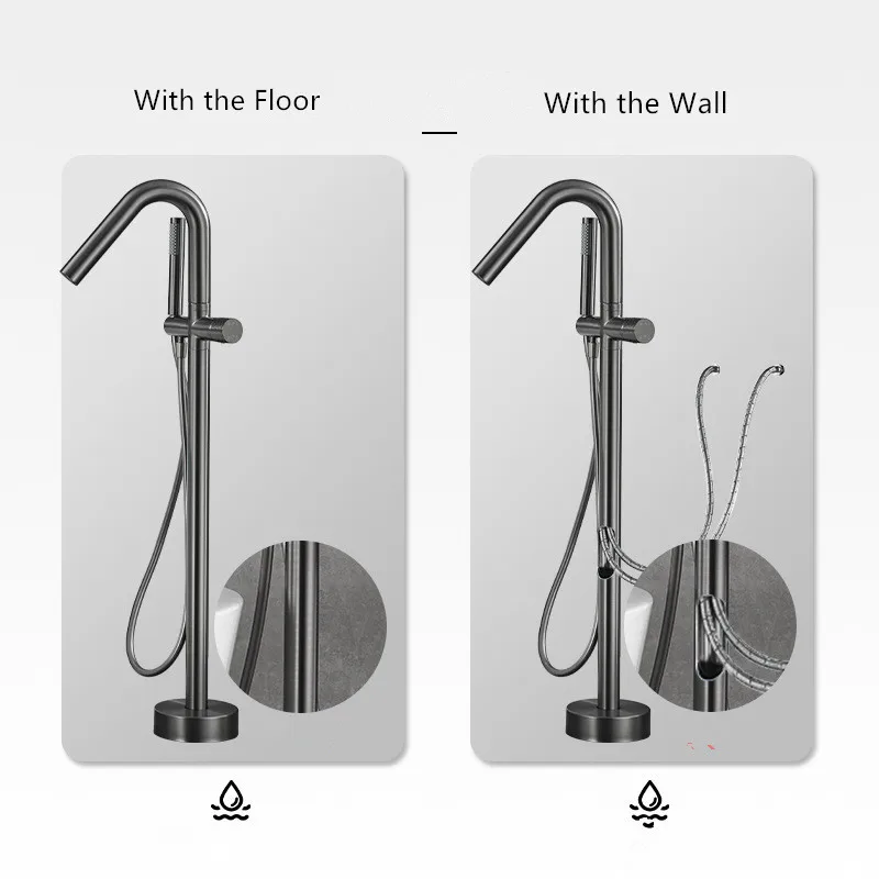 Robinet de baignoire de salle de bain en or brossé au sol + douche à main mitigeurs de baignoire de luxe en bronze antique sur pied