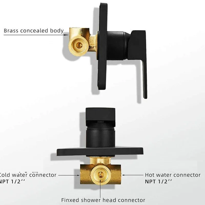 Robinets de bain-douche noirs, commande de mitigeur en laiton, interrupteur de douche dissimulé, mélangeur de robinet d’hôtel, interrupteur de douche mural de mélange