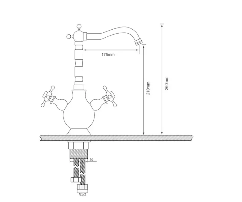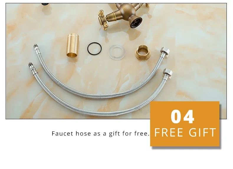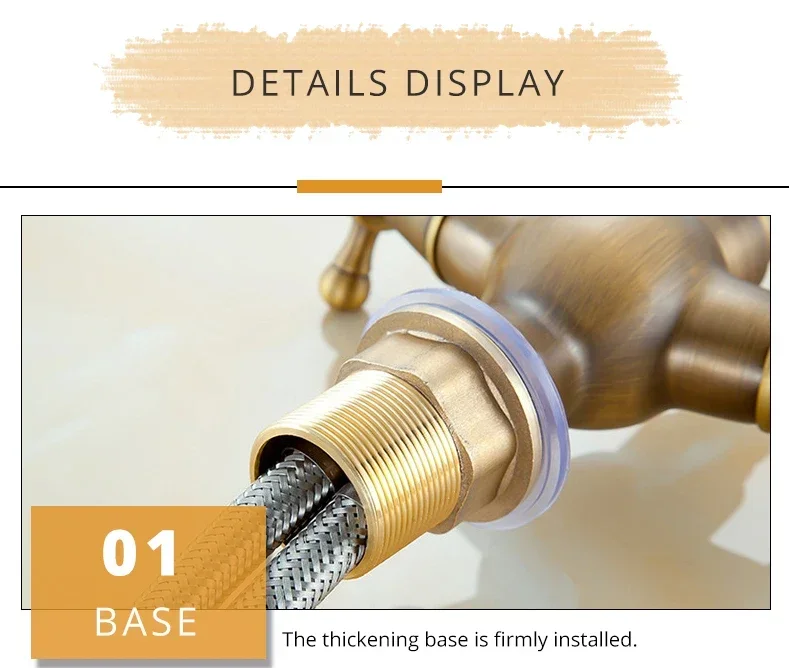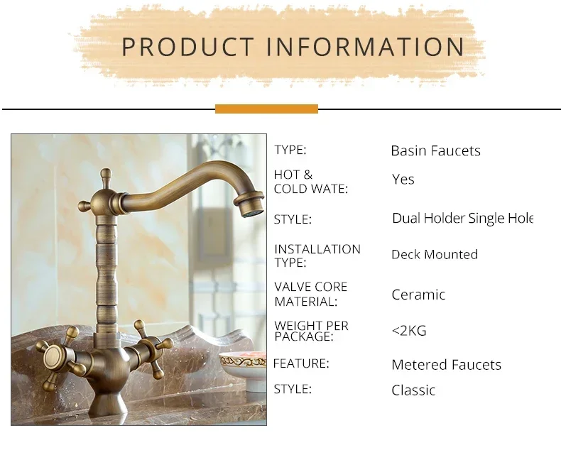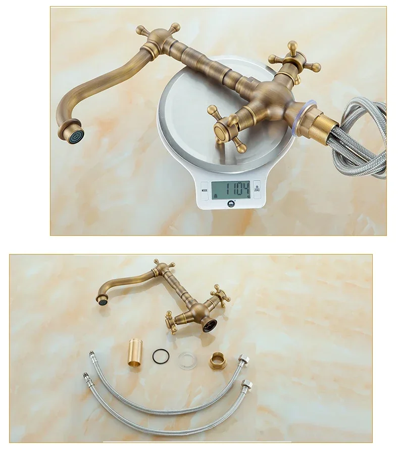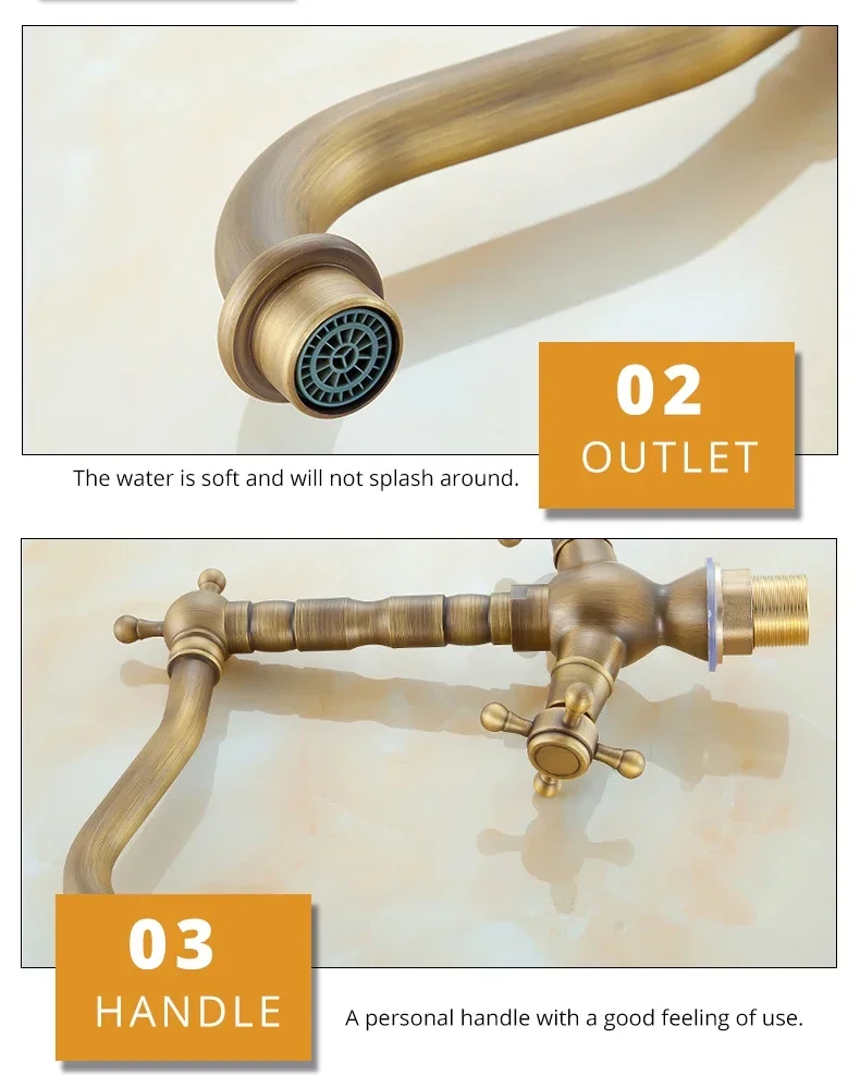Robinet de lavabo à deux poignées Robinets mitigeurs en laiton fini bronze Rotation à 360 ° Robinet d’évier de bain antique Robinets d’eau montés sur le pont