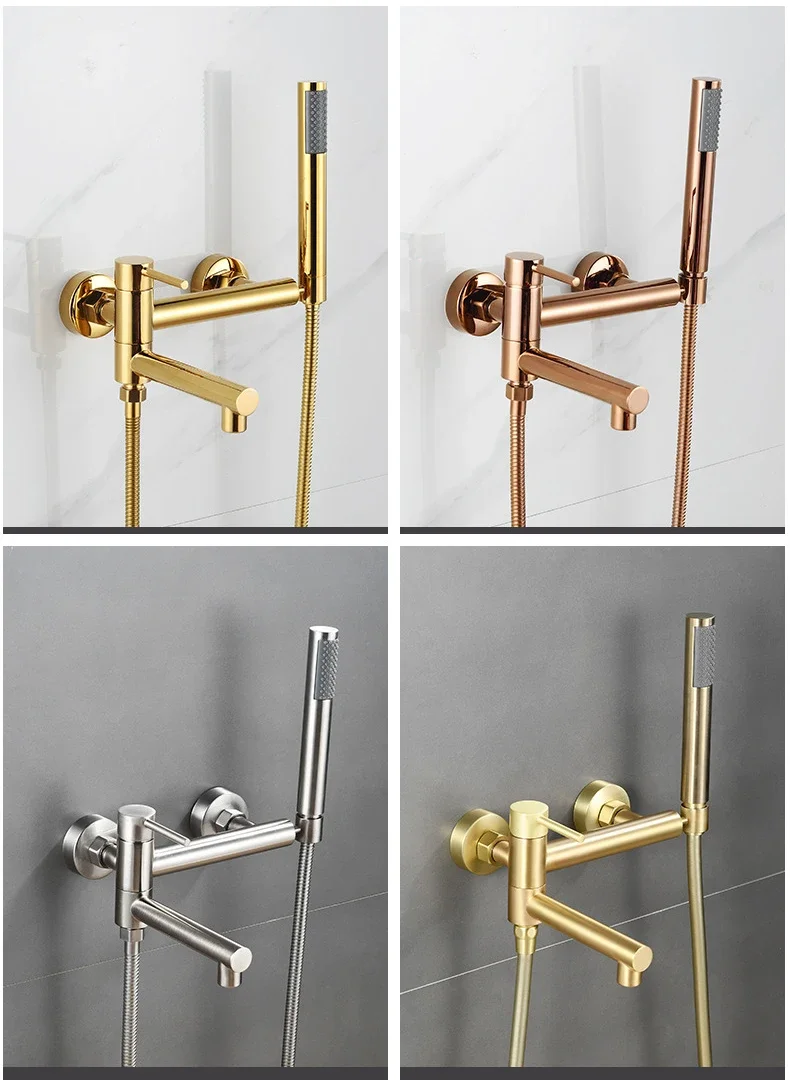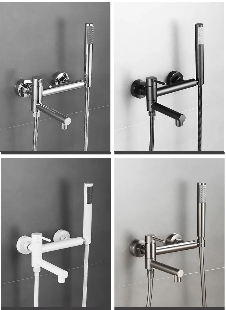 Robinets de centre commercial muraux avec ensembles de douchette à main, douche de baignoire, laiton, poignée unique, bec cascade, Robinets HOBidetRobinets de centre commercial muraux avec ensembles de douchette à main, douche de baignoire, laiton, poignée unique, bec cascade, Robinets HOBidet